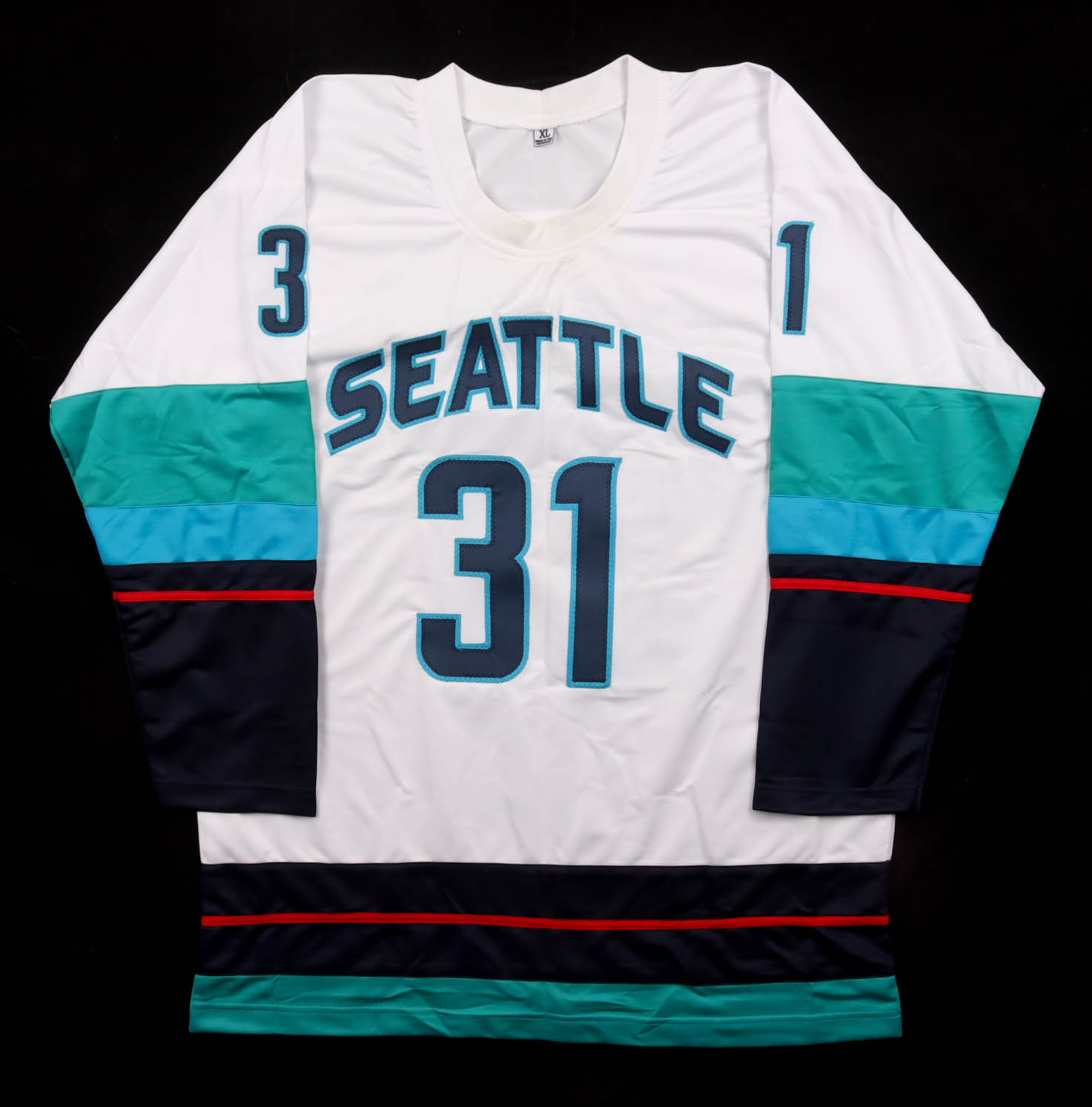Custom jersey with everything sewn on, size XL. Hand-signed by Philipp Grubauer.