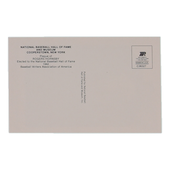 National Baseball Hall Of Fame Postcard features a cut that has been hand-signed by Rogers Hornsby (D. 1963, St. Louis Cardinals, HOF).