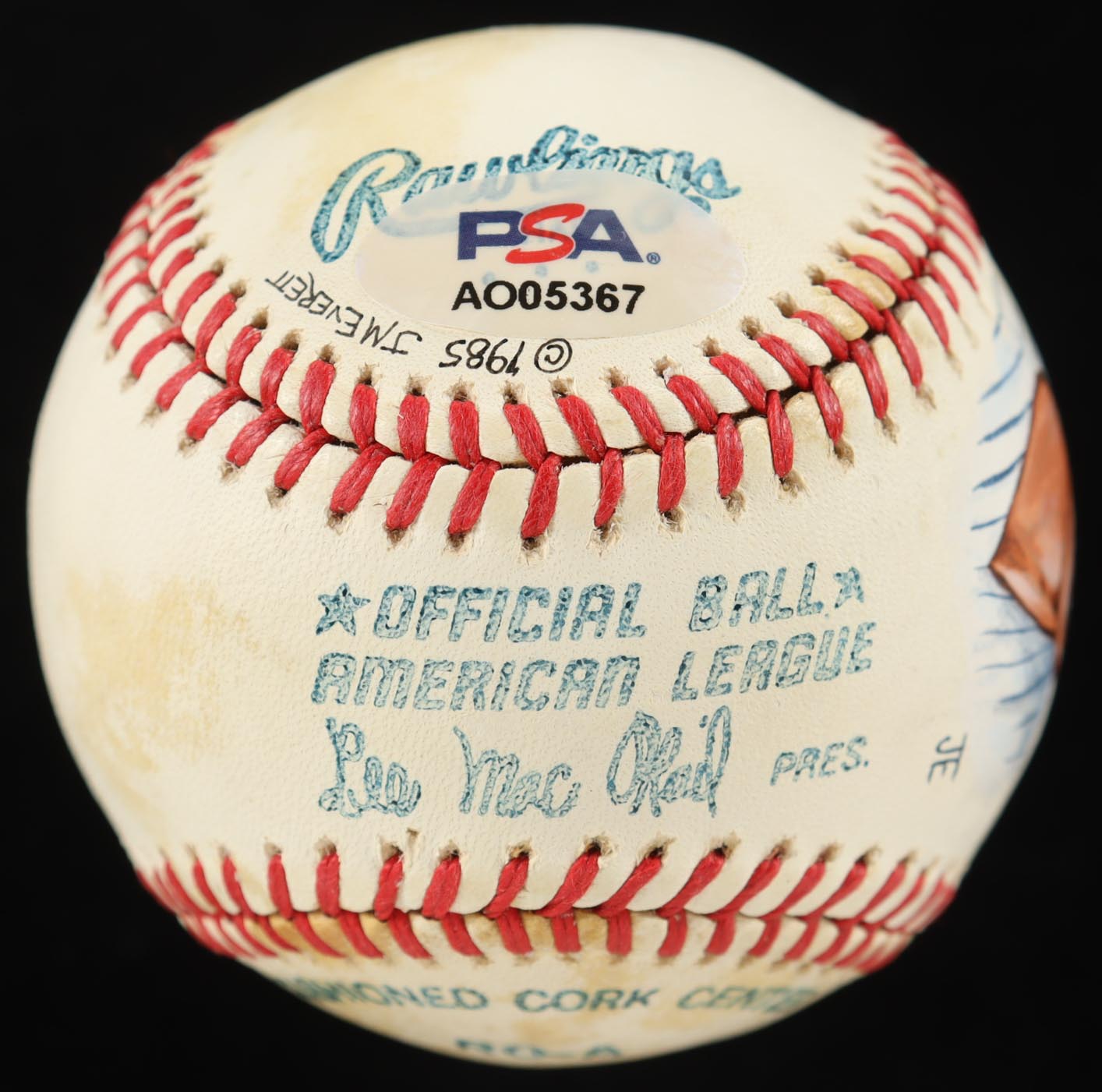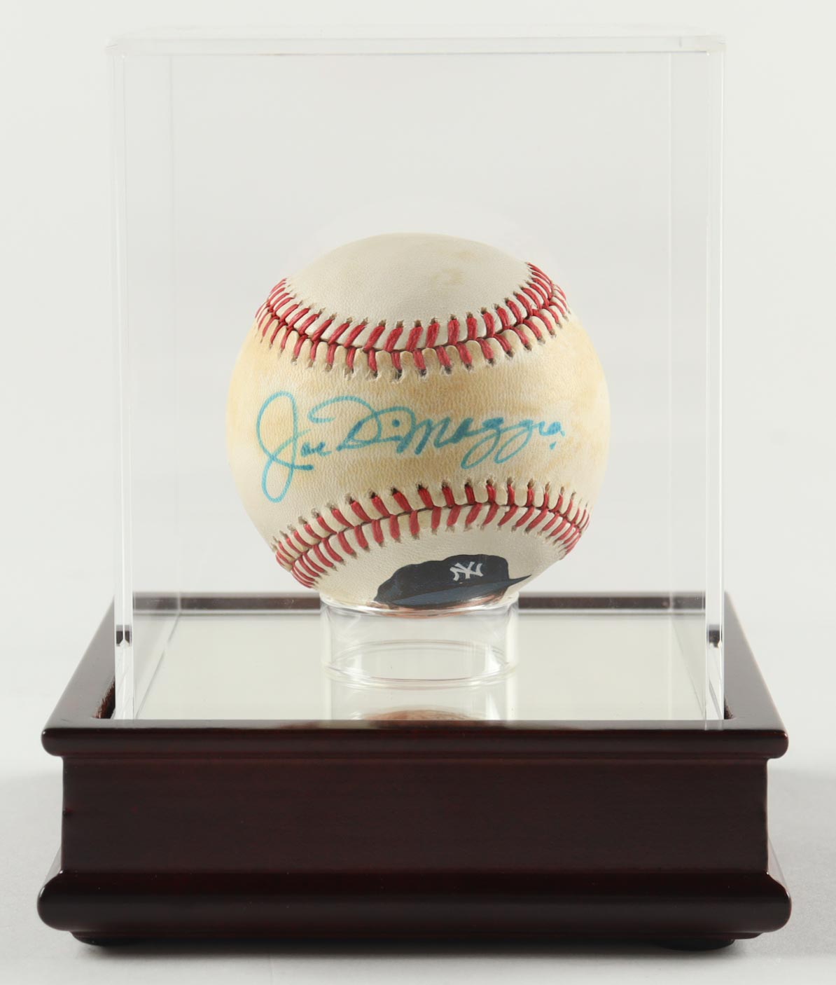 Rawlings Official Hand-Painted American League baseball. Hand-signed by Joe DiMaggio (D. 1999, New York Yankees, HOF). Note that the display case is included in the listing as shown above.