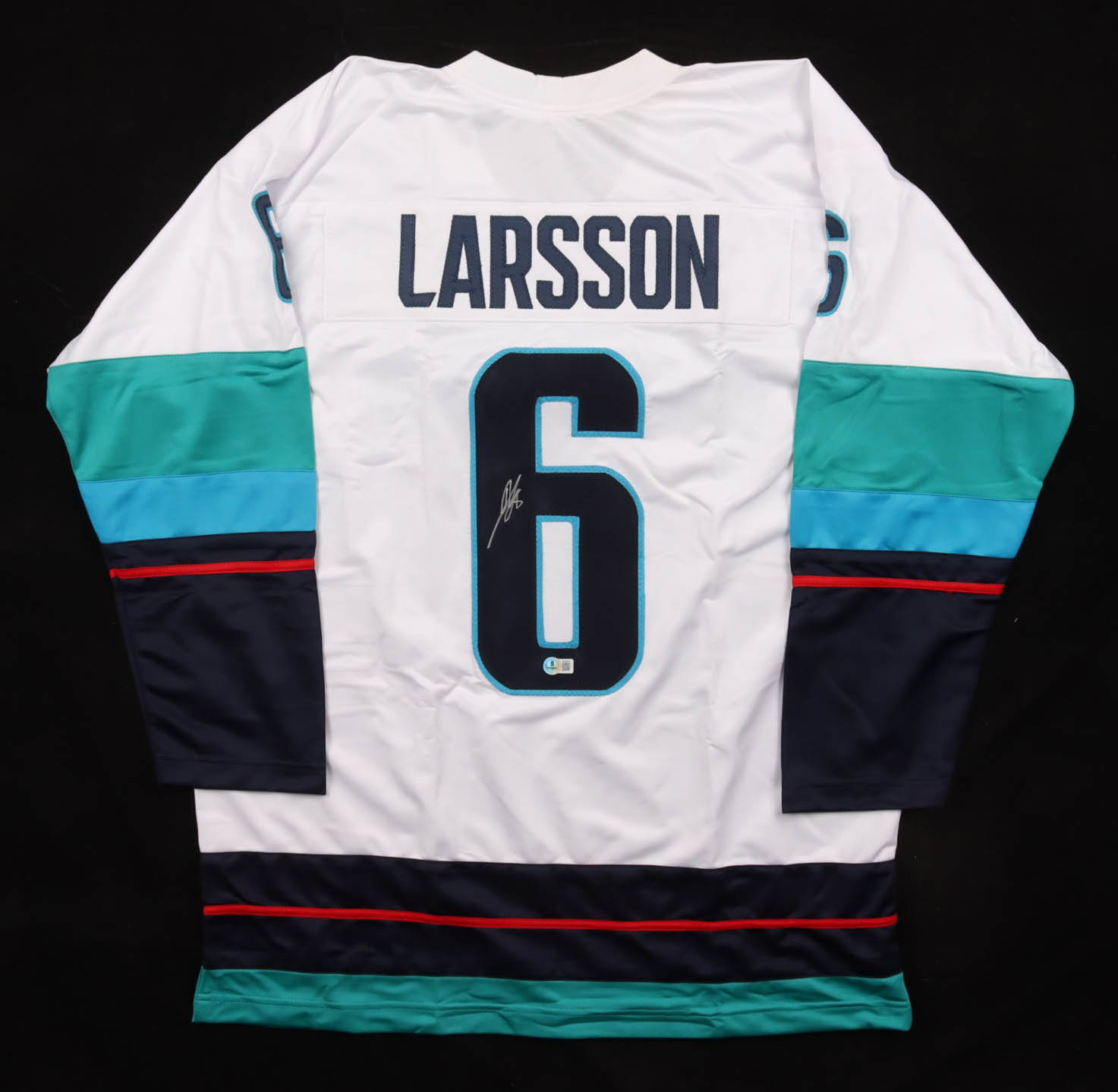 Custom jersey with everything sewn on, size XL. Hand-signed by Adam Larsson.