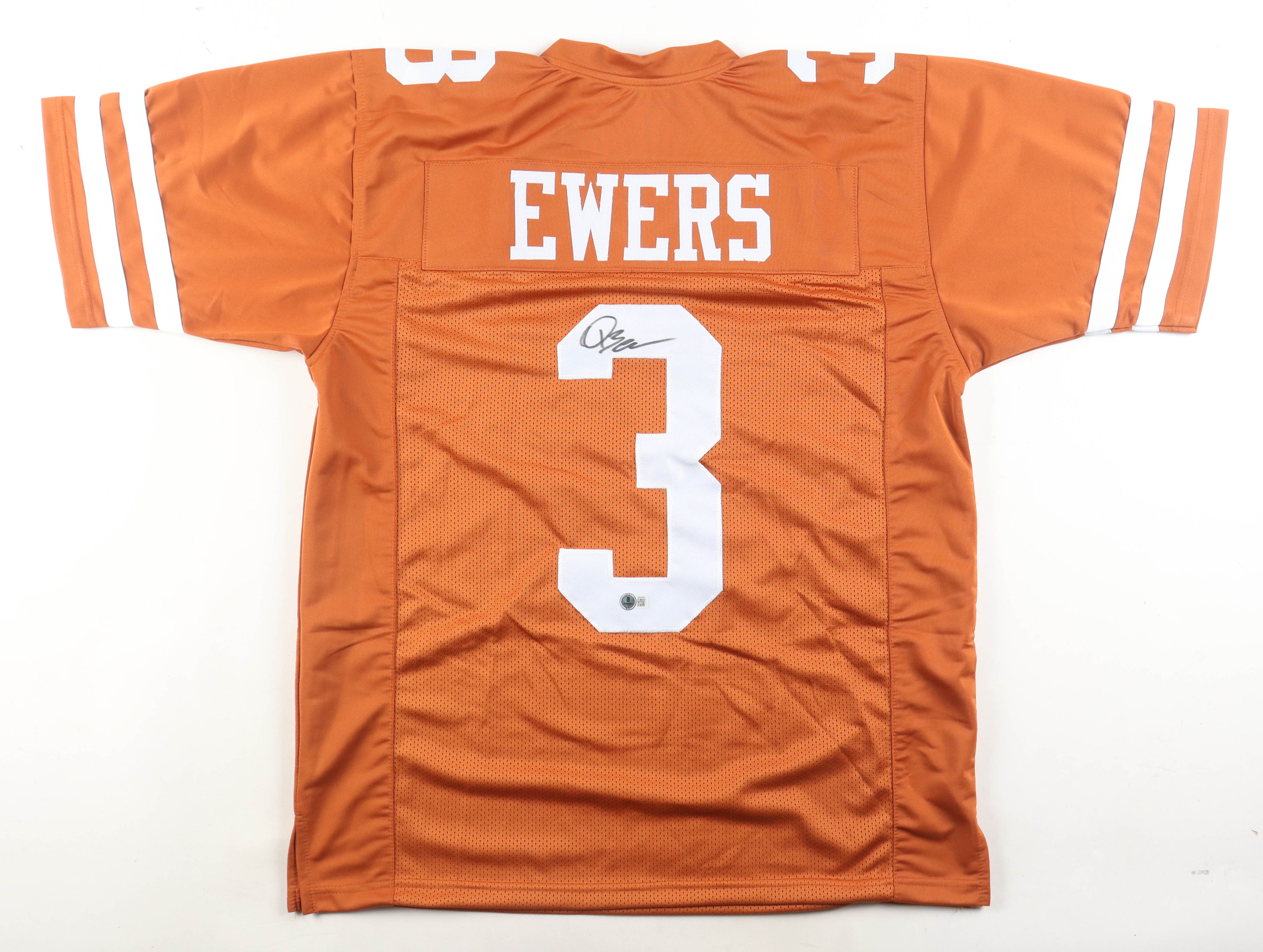 Custom jersey with everything sewn on, size XL. Hand-signed by Quinn Ewers.