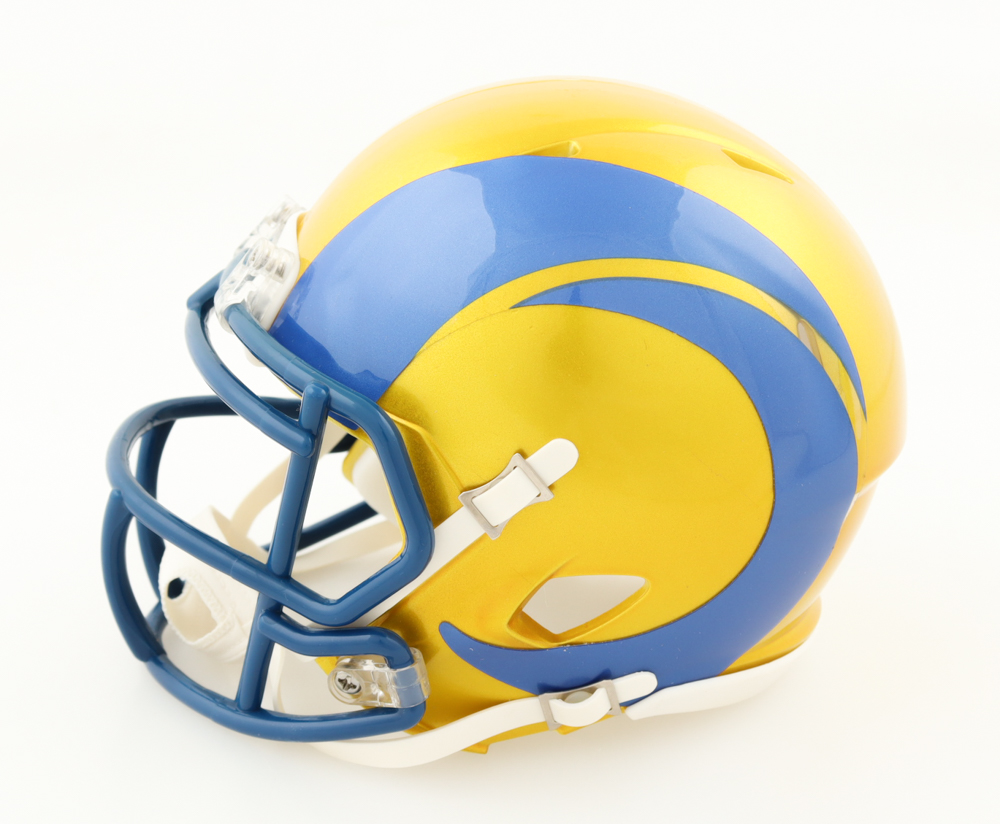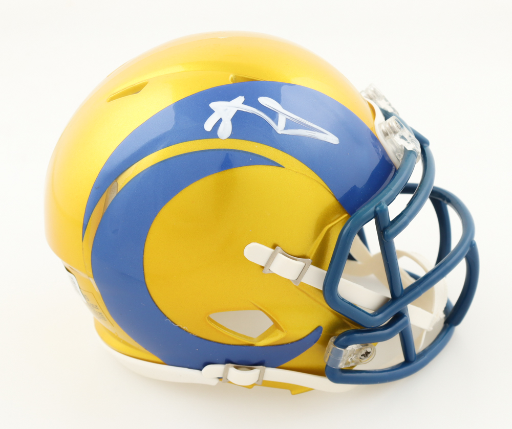Riddell Los Angeles Rams Flash Alternate Speed Mini Helmet has been hand-signed by Aaron Donald.