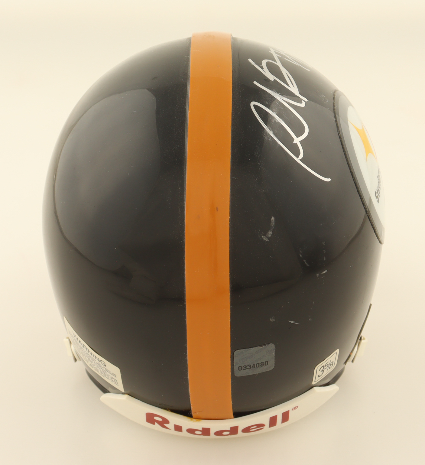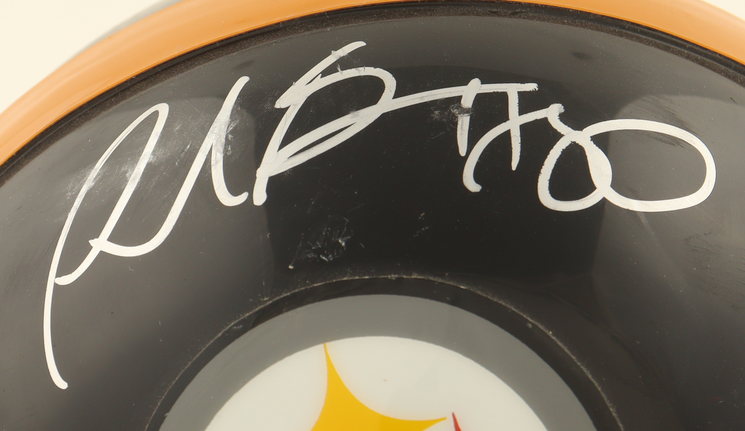 Riddell Pittsburgh Steelers mini helmet. Hand-signed by Plaxico Burress. See photos for more details.