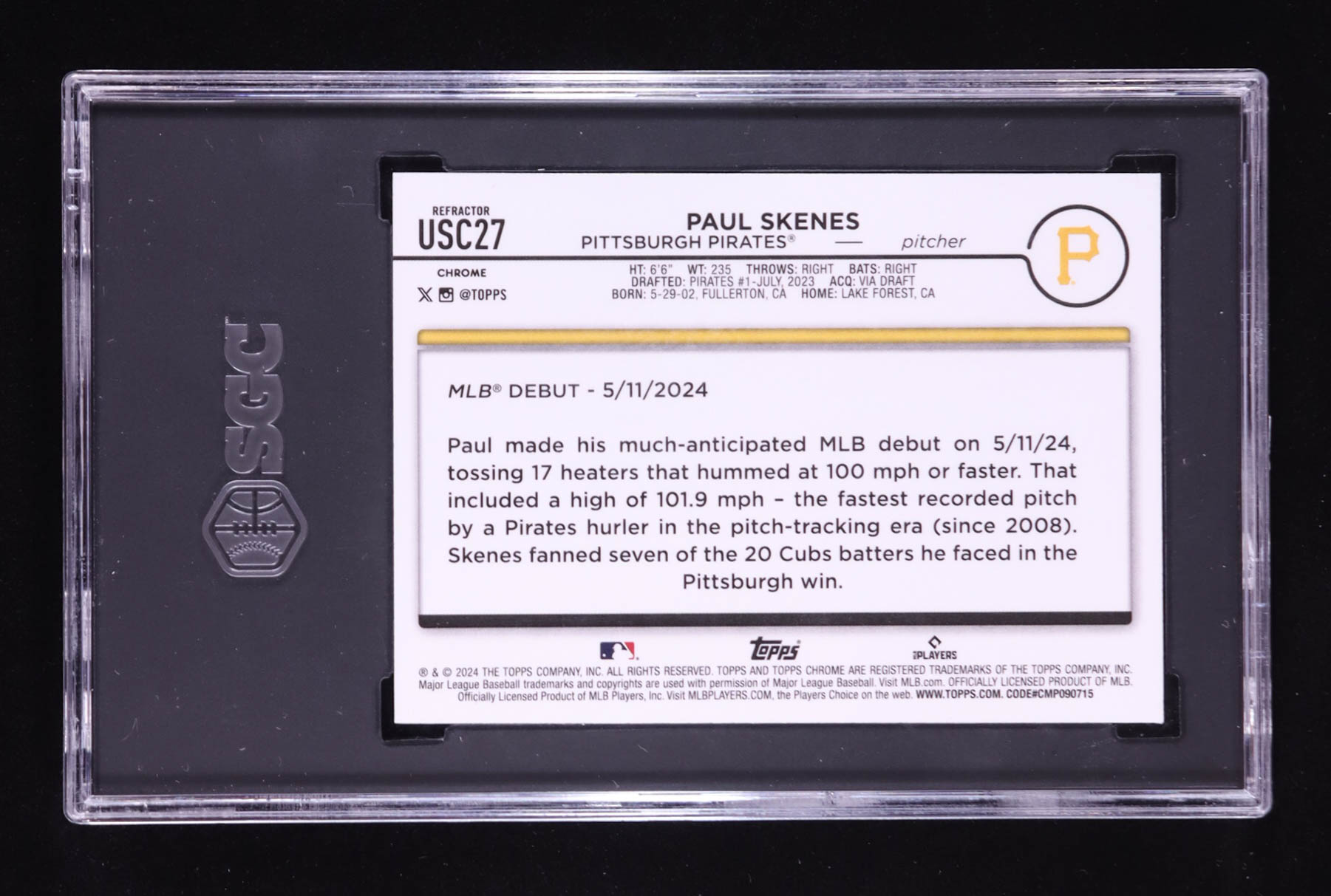 Paul Skenes 2024 Topps Chrome Update Refractors #USC27 RC (SGC 9.5)