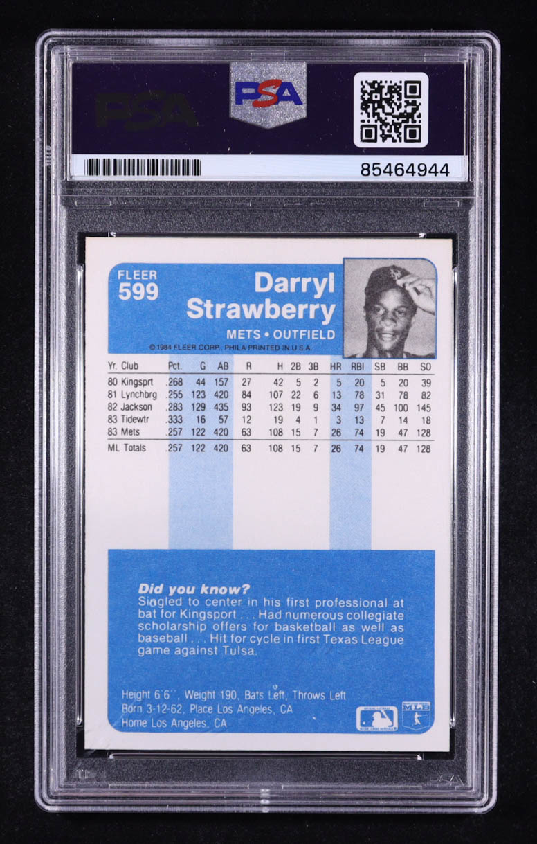 Darryl Strawberry Signed 1984 Fleer #599 RC Inscribed "86 WS Champs" (PSA | Auto 9)