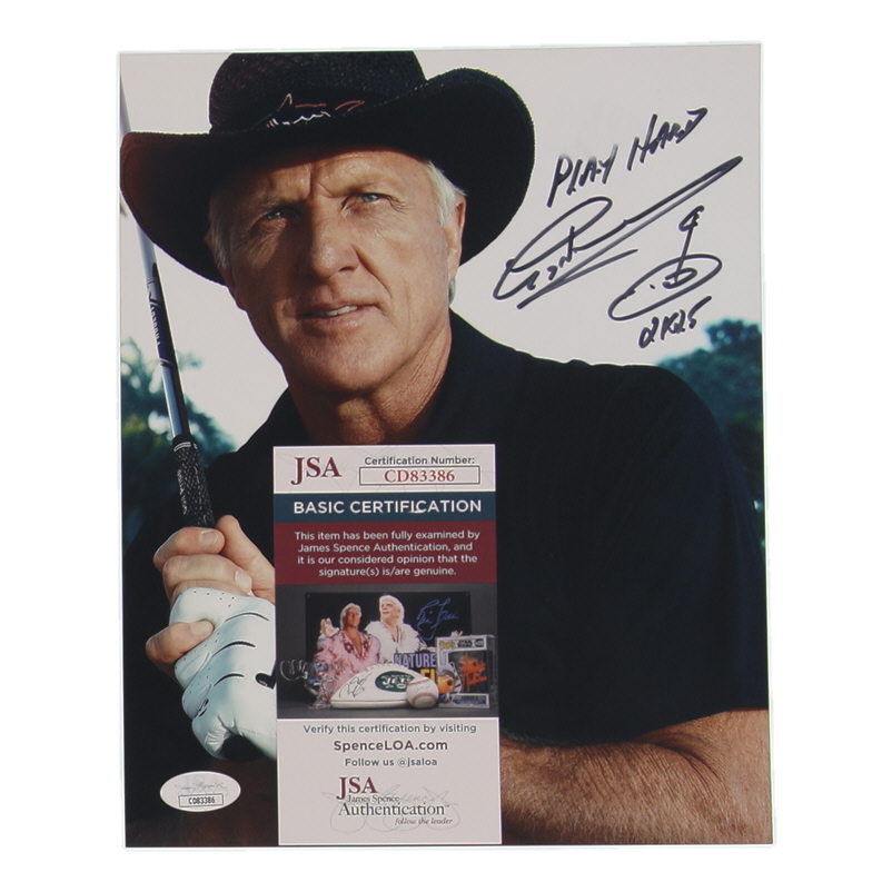 Greg Norman Signed 8x10 Photo Inscribed "Play Hard" (JSA)