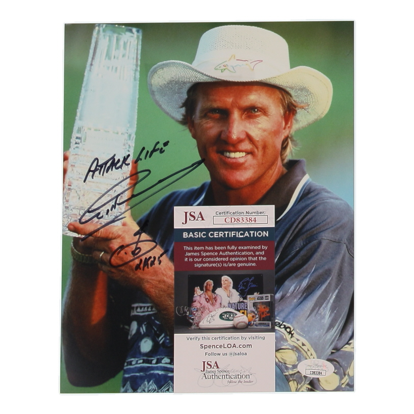 Greg Norman Signed 8x10 Photo Inscribed "Attack Life" (JSA)