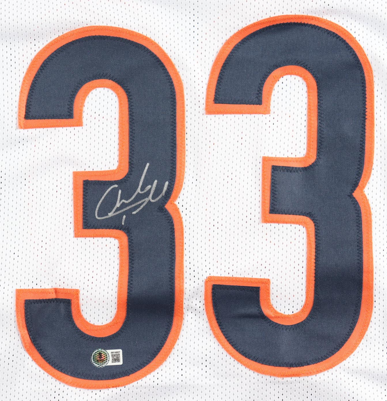 Custom jersey with everything sewn on, size XL. Hand-signed by Charles Tillman.