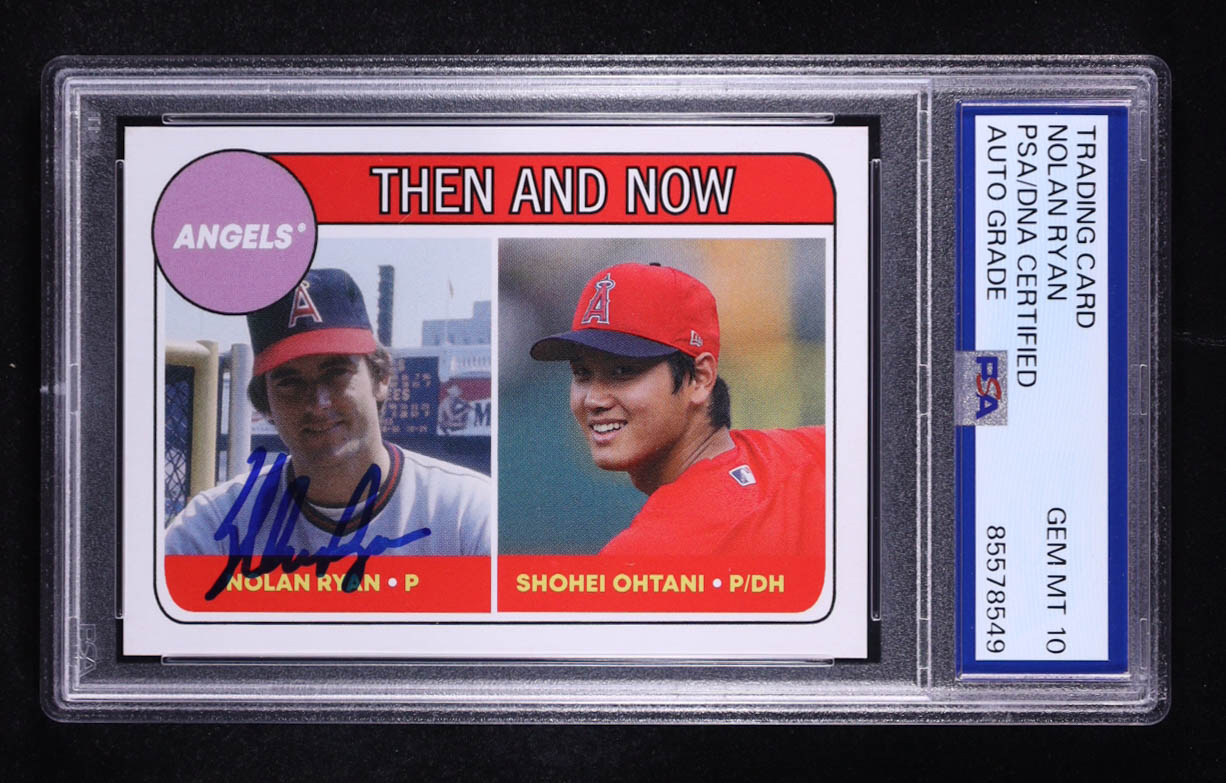 Nolan Ryan Signed 2018 Topps Throwback Thursday #67 Nolan Ryan / Shohei Ohtani RC (PSA | Auto 10)
