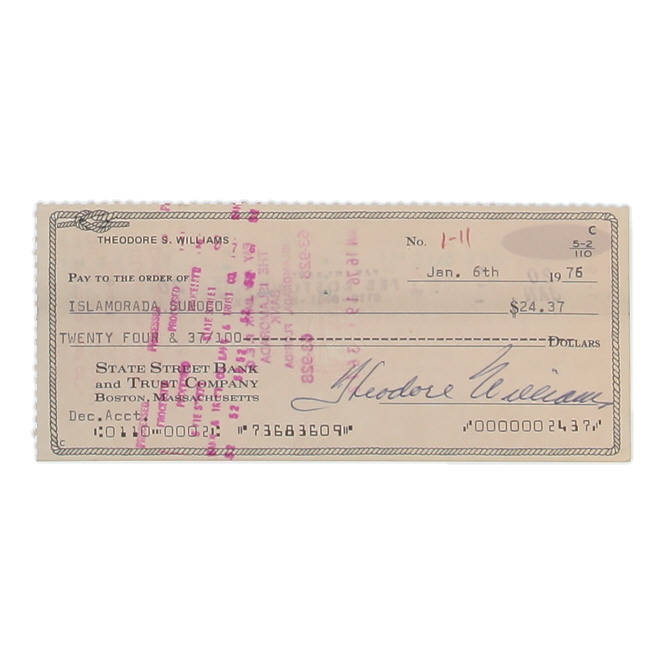 Ted Williams Signed 1976 State Street Bank Personal Check (Williams)