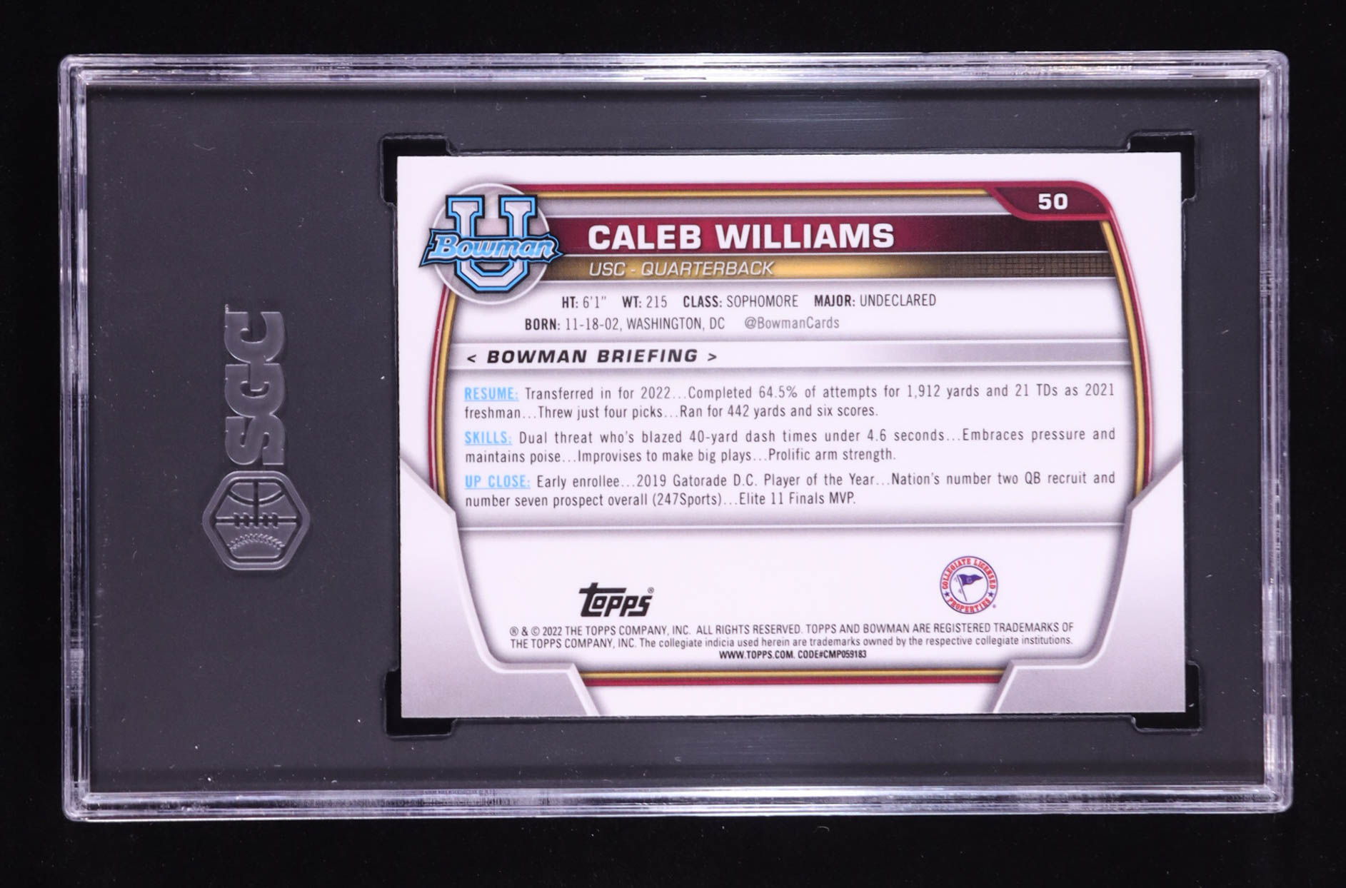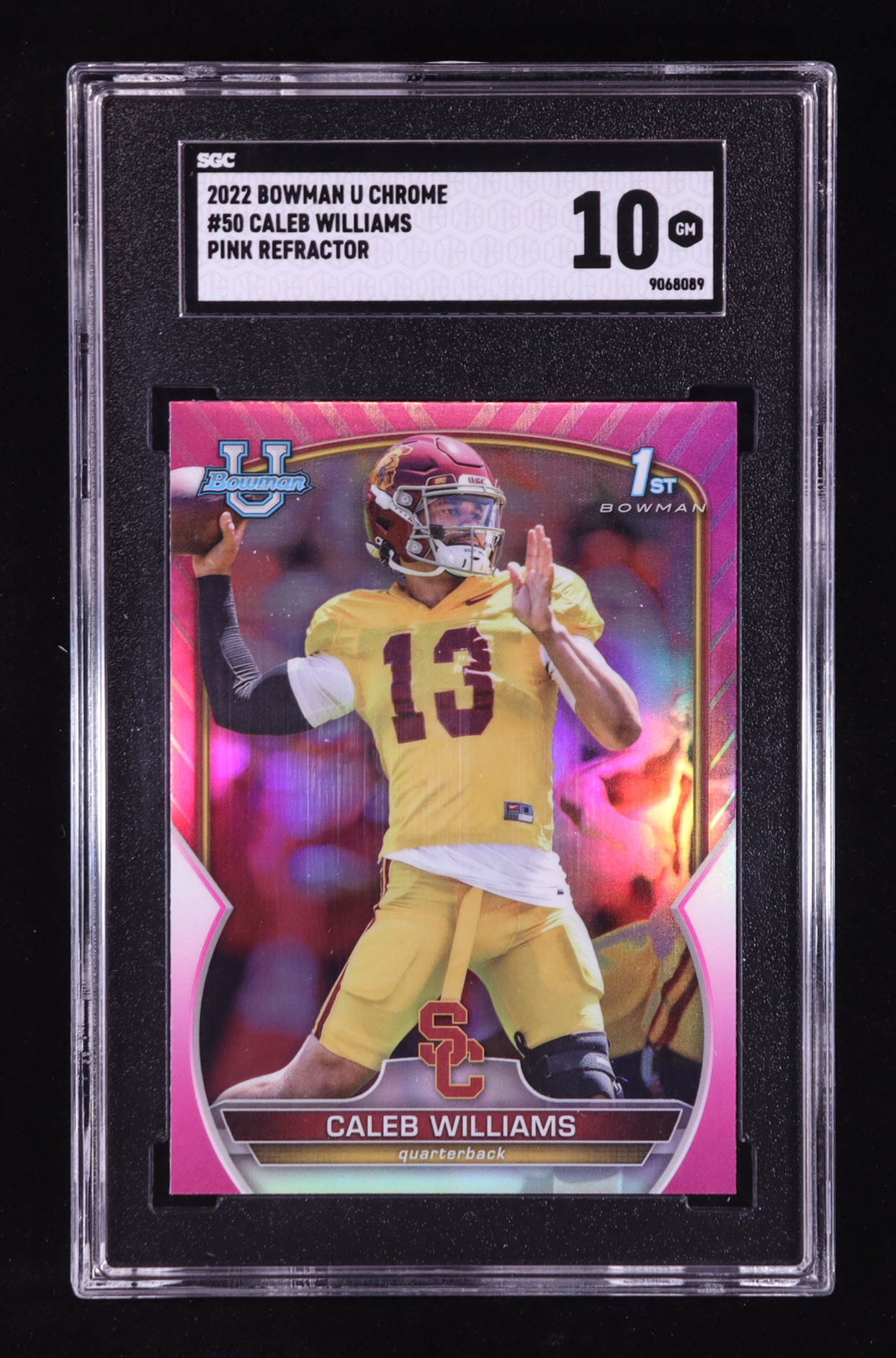 Caleb Williams 2022 Bowman Chrome University Pink Refractors #50 RC (SGC 10)