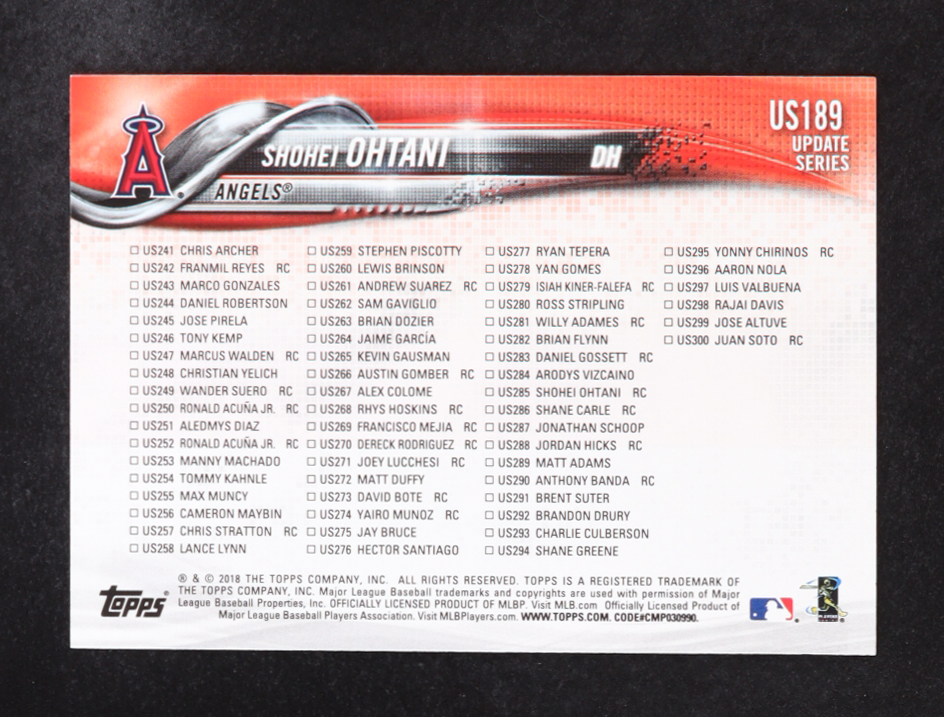 Shohei Ohtani 2018 Topps Update #US189 HL RC