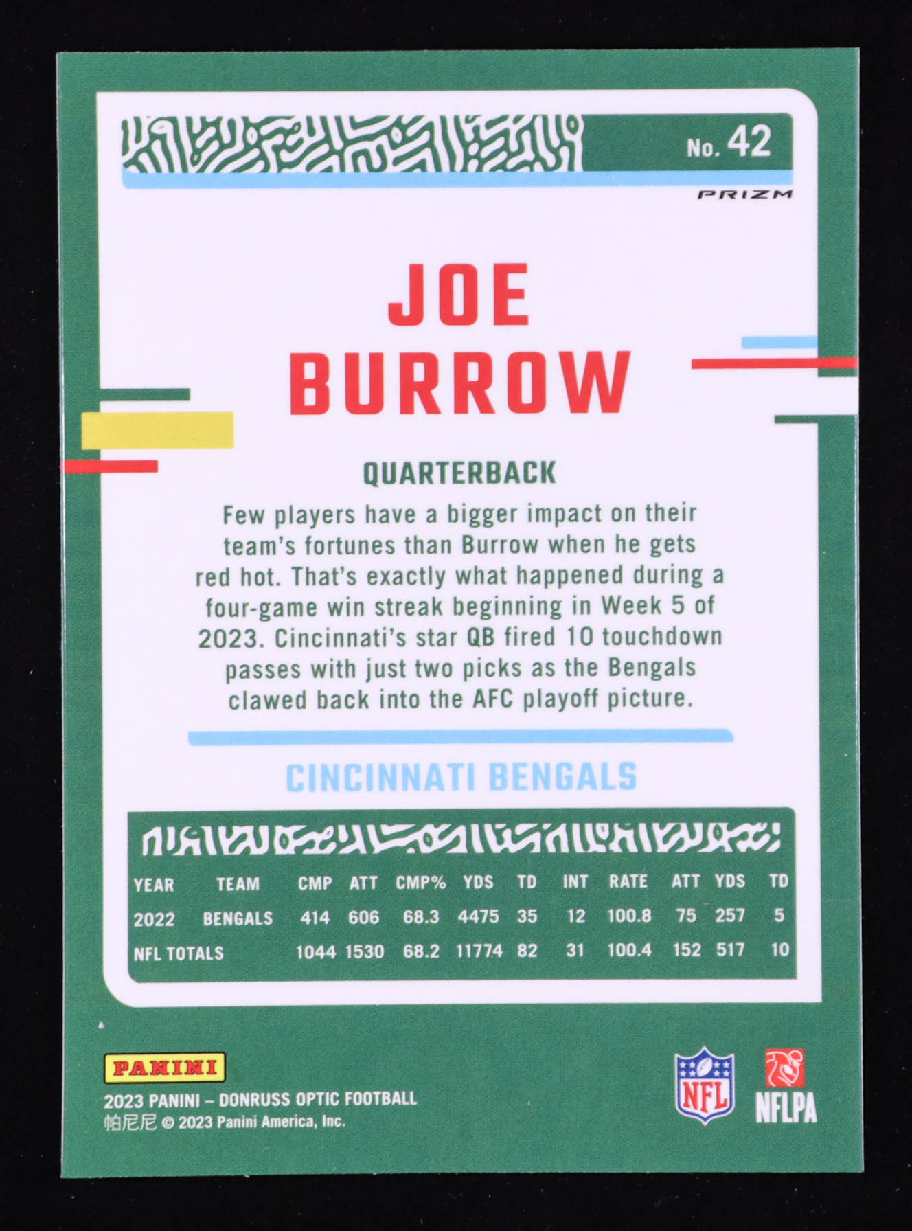 Joe Burrow 2023 Panini Donruss Optic Blue Stars #42