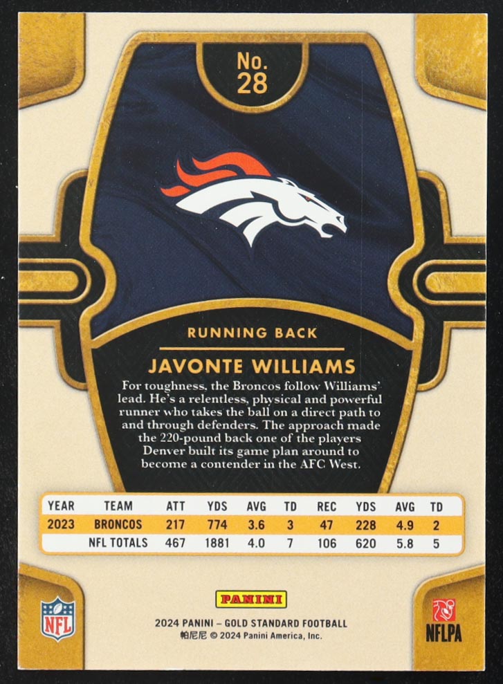 Javonte Williams 2024 Panini Gold Standard White Gold #28 #21/65