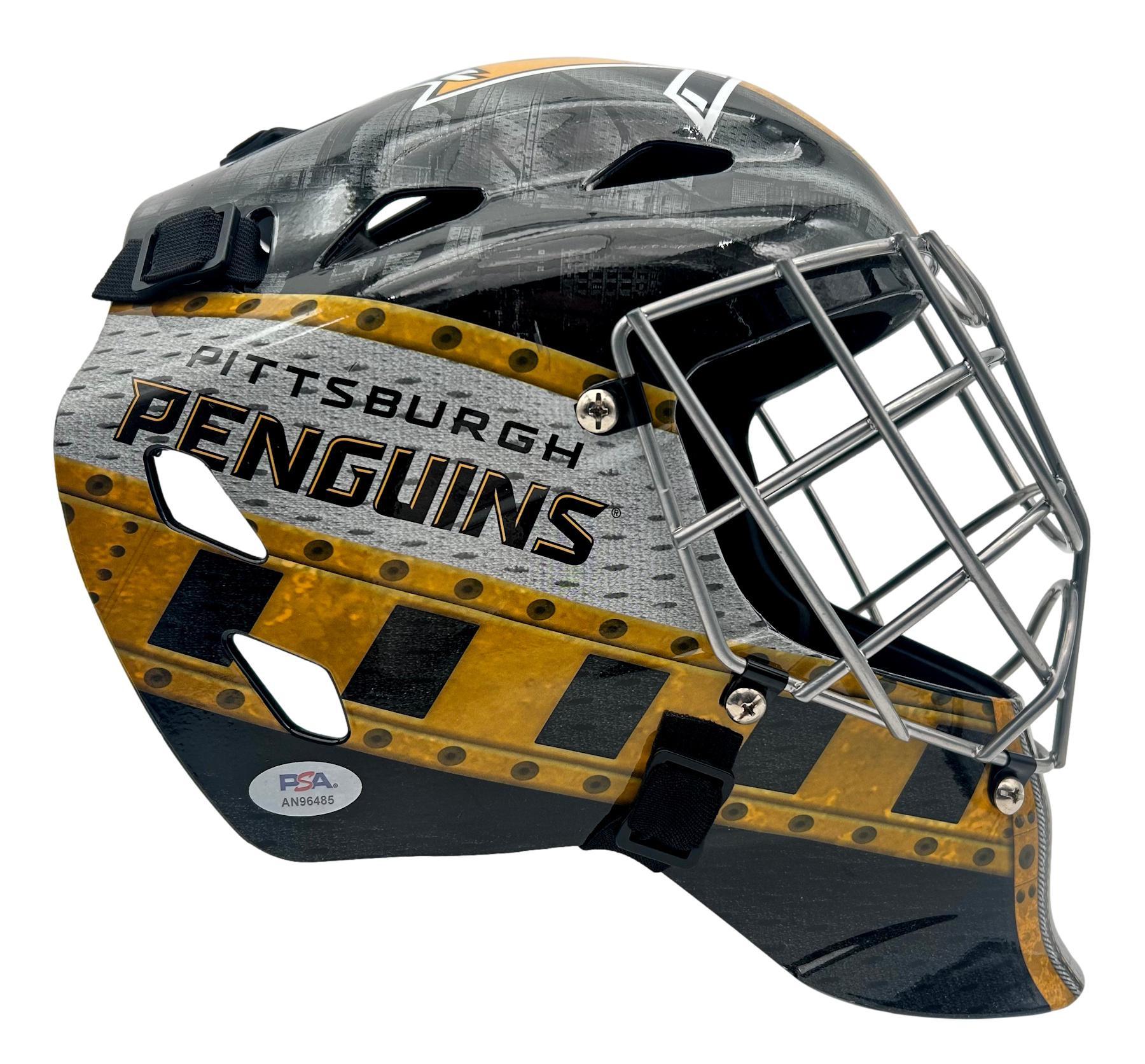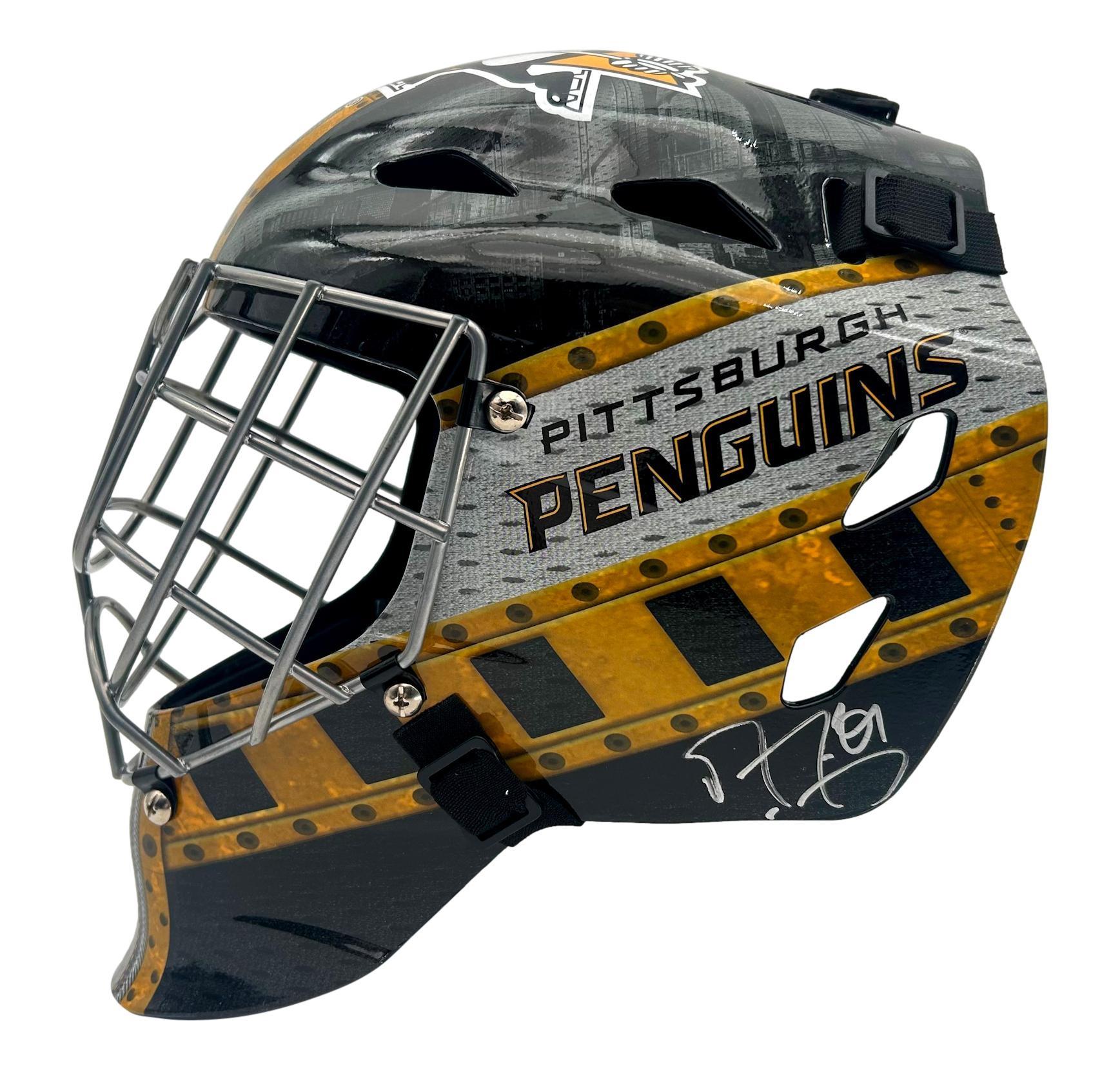 Pittsburgh Penguins full-size replica goalie mask. Hand-signed by Marc-Andre Fleury.