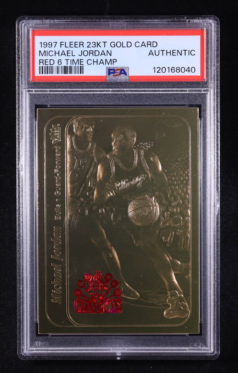 Michael Jordan 1997 Fleer Basketball Texture Red 6 Time Champions 23Kt Gold Card #NNO (PSA Authentic)