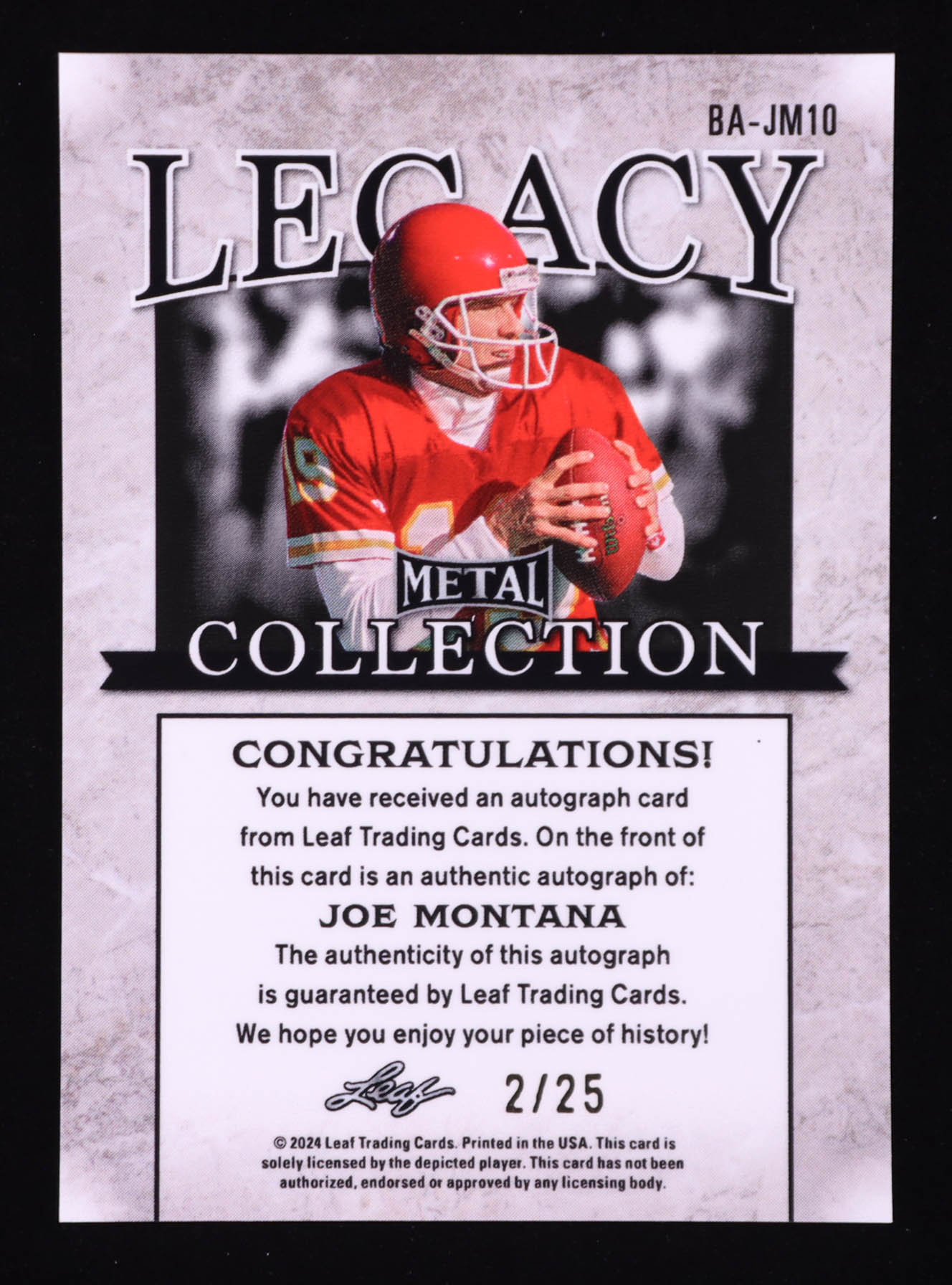 Joe Montana 2024 Leaf Metal Legacy Collection Light Blue Auto #BA-JM10 #2/25