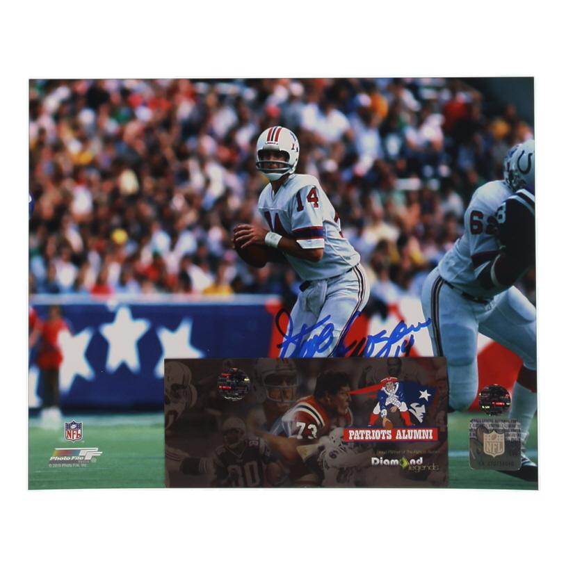 Photo measures 8" x 10" in size and has been hand-signed by Steve Grogan (New England Patriots).