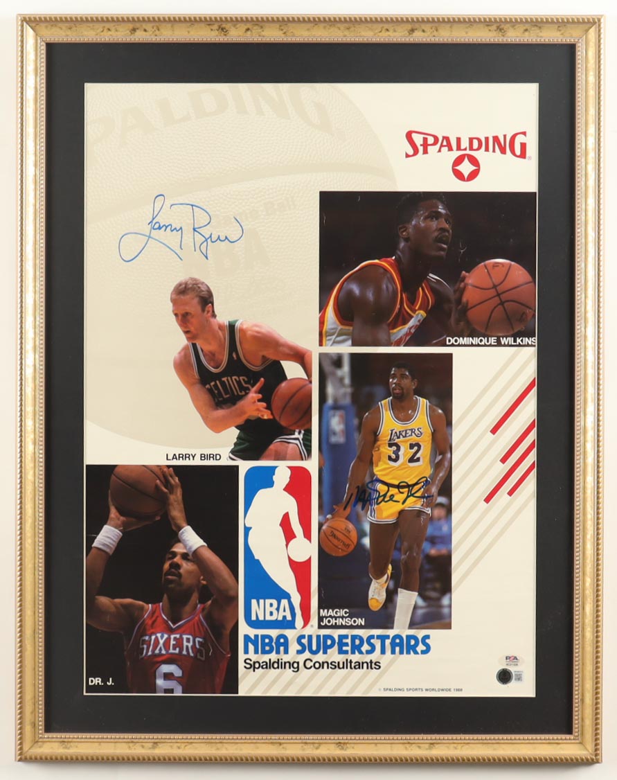 Larry Bird & Magic Johnson Signed Vintage 1988 Spalding Custom Framed Poster Display (PSA & Beckett)