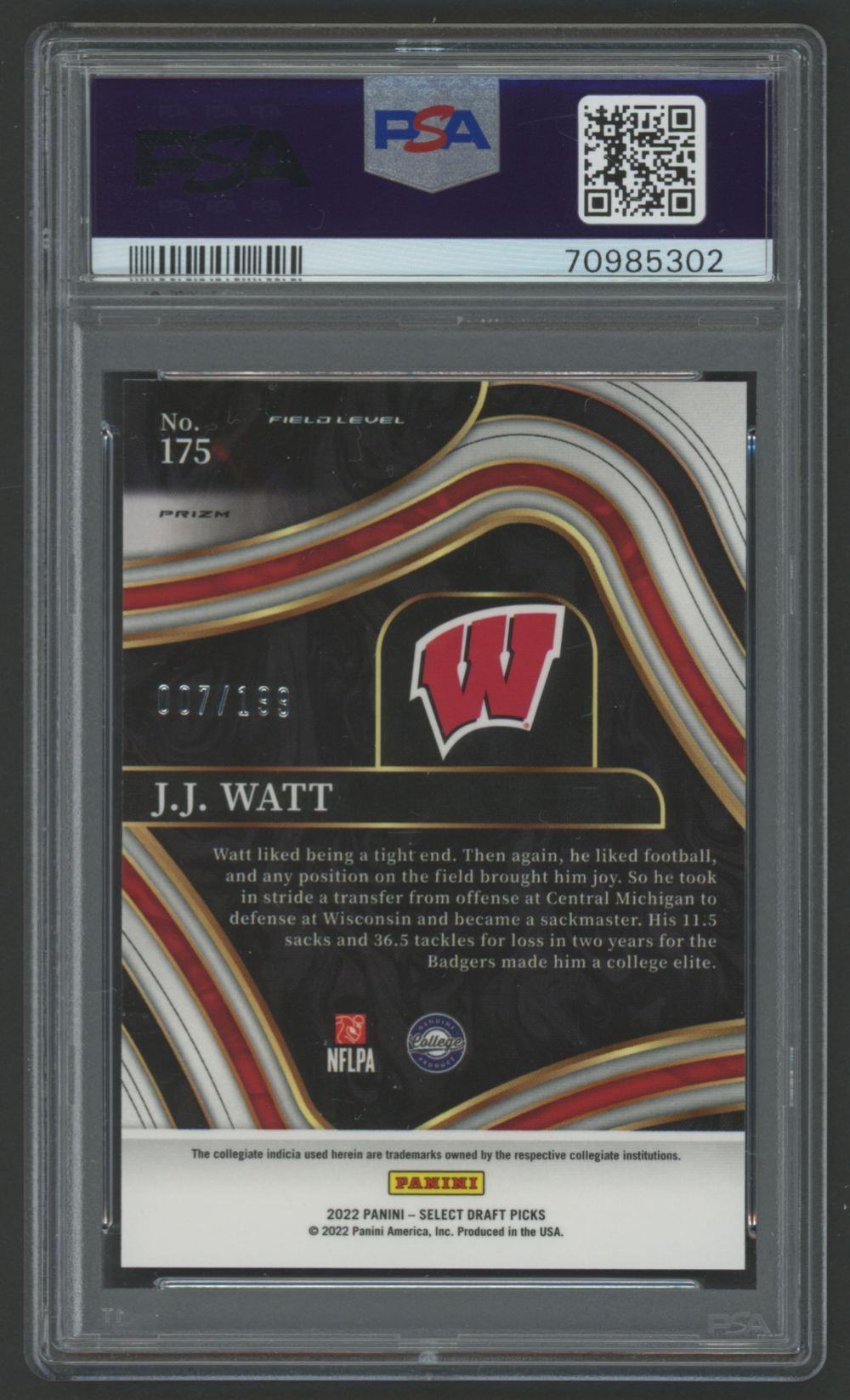 JJ Watt 2022 Select Draft Tri-Color #175 #7/199 (PSA 10)