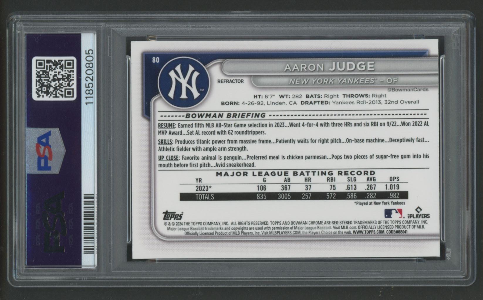 Aaron Judge 2024 Bowman Chrome Refractor #80 #252/499 (PSA 10)