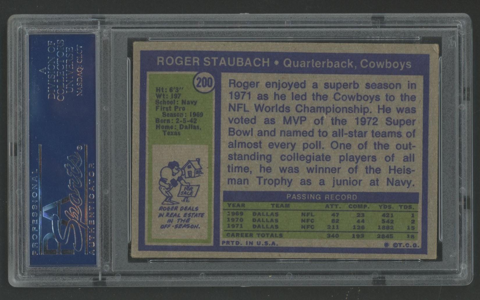 Roger Staubach 1972 Topps #200 RC (PSA 3)