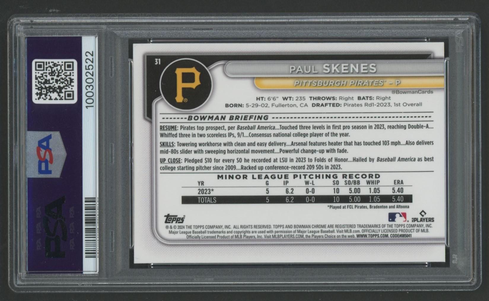 Paul Skenes 2024 Bowman Chrome #31 RC (PSA 10)
