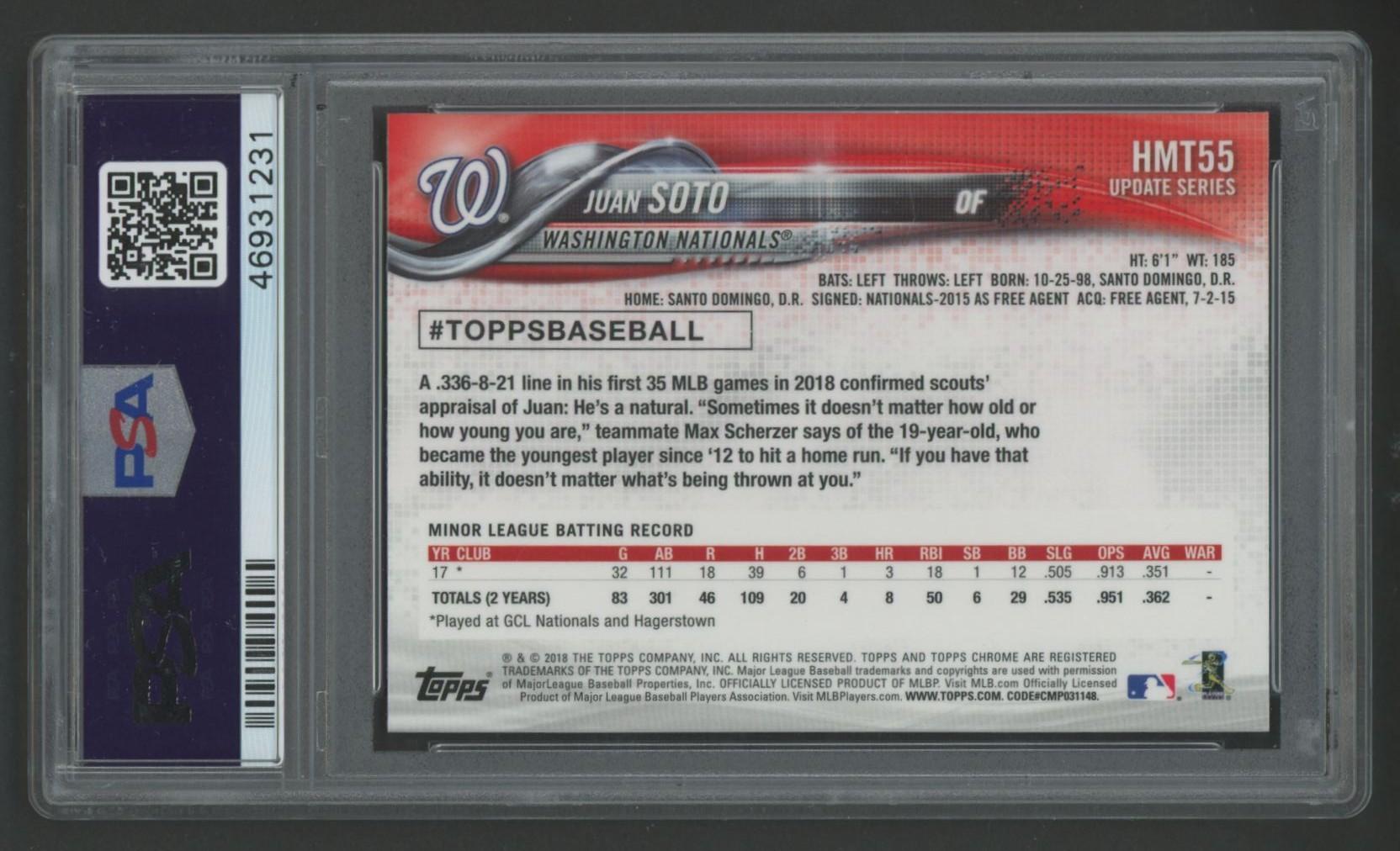 Juan Soto 2018 Topps Chrome Update #HMT55 RC (PSA 10)