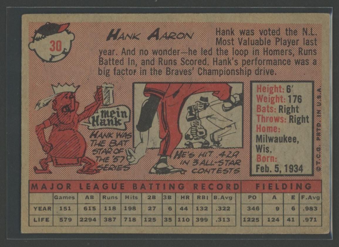 Hank Aaron 1958 Topps #30A