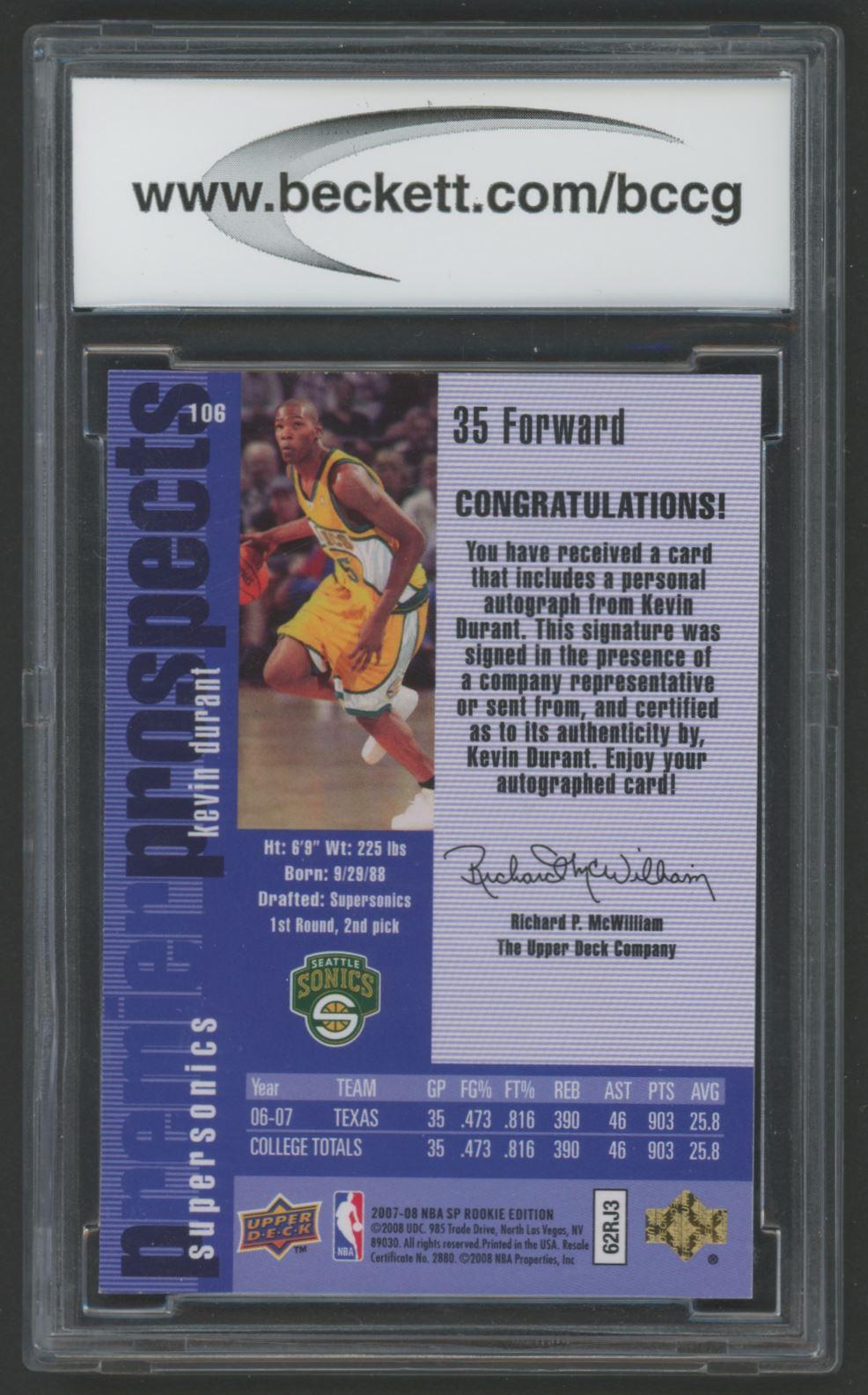 Kevin Durant 2007-08 SP Rookie Edition 1996-97 SP Rookie Autographs #106 RC (BCCG 10)