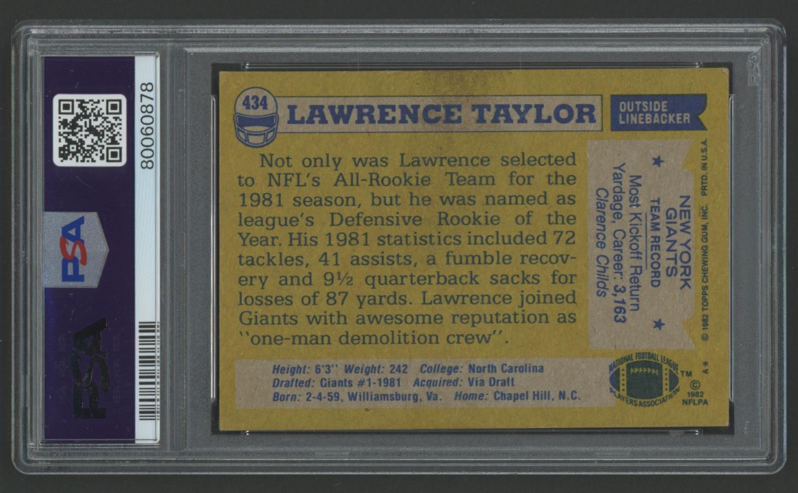 Lawrence Taylor Signed 1982 Topps #434 RC (PSA)