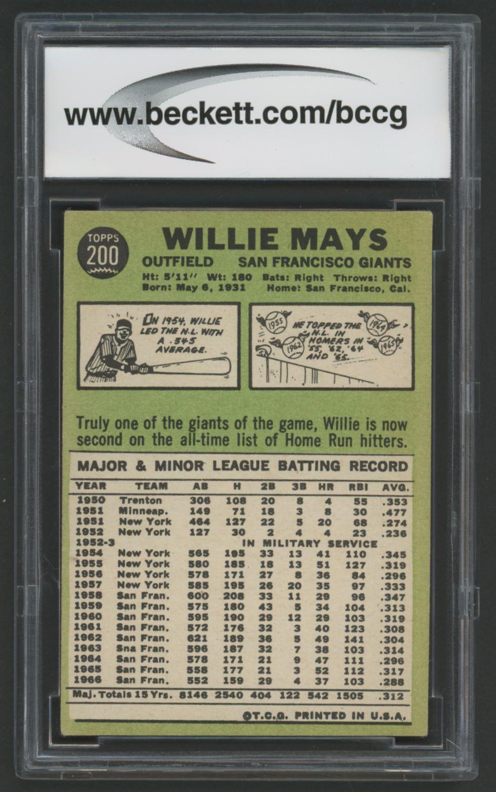 Willie Mays 1967 Topps #200 (BCCG 8)