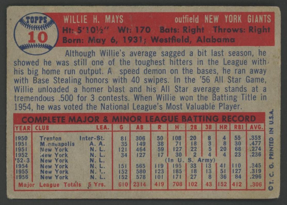 Willie Mays 1957 Topps #10
