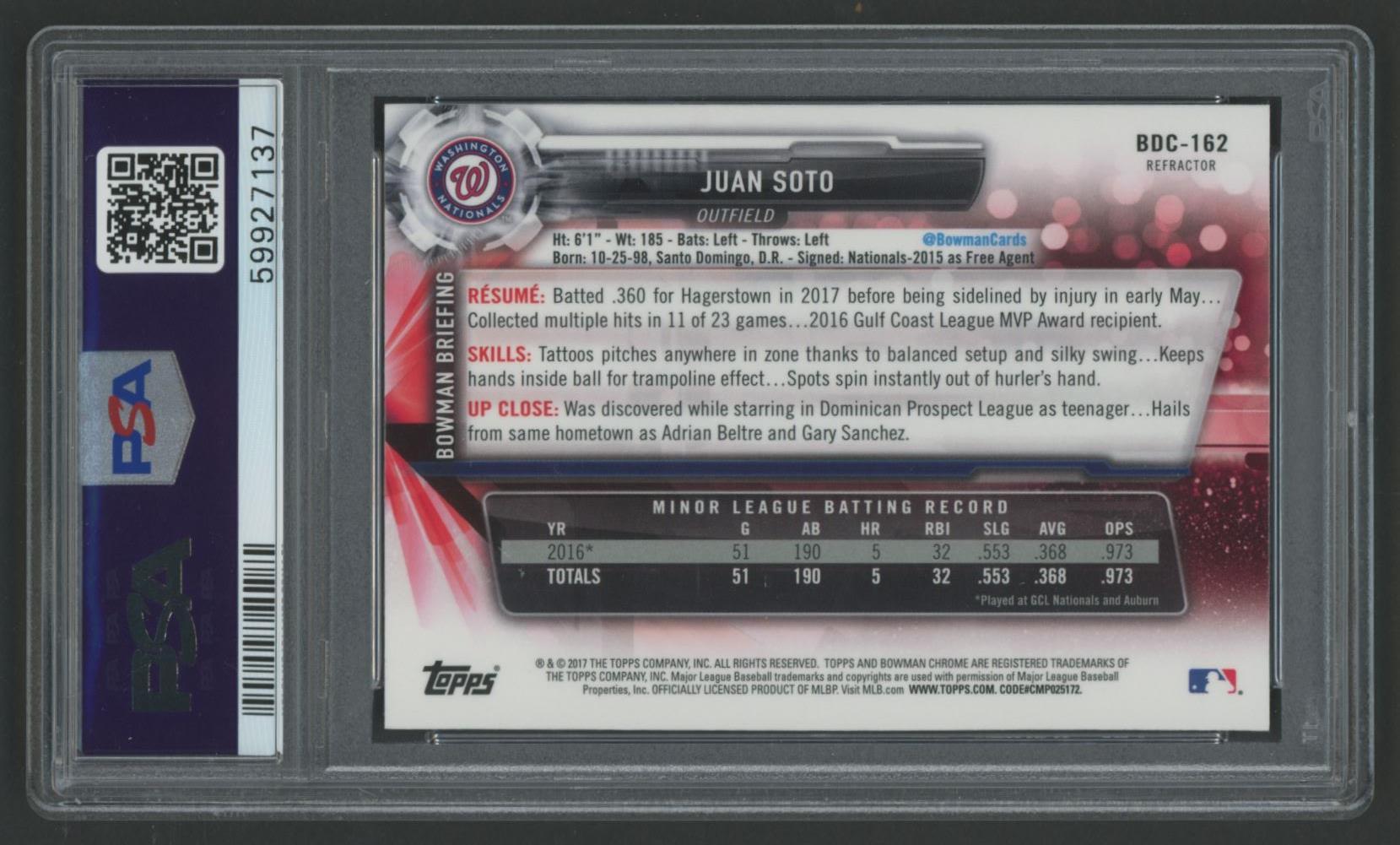 Juan Soto 2017 Bowman Chrome Draft Refractors #BDC162 (PSA 9)