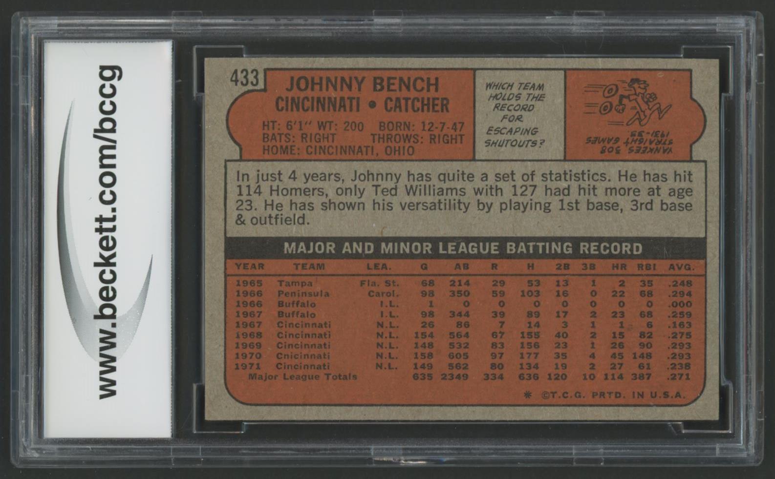 Johnny Bench 1972 Topps #433 (BCCG 8)