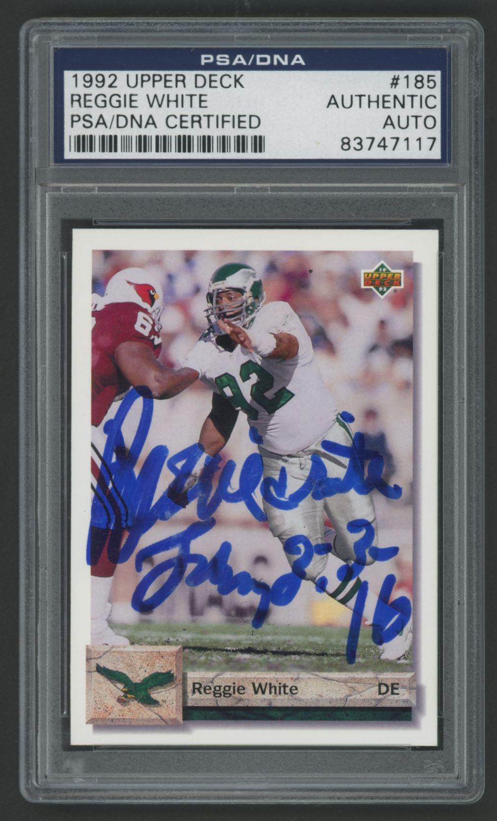 Reggie White Signed 1992 Upper Deck #185 with Inscription (PSA)