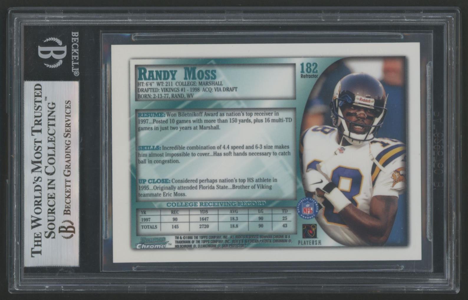 Randy Moss 1998 Bowman Chrome Refractors #182 (BGS 9)
