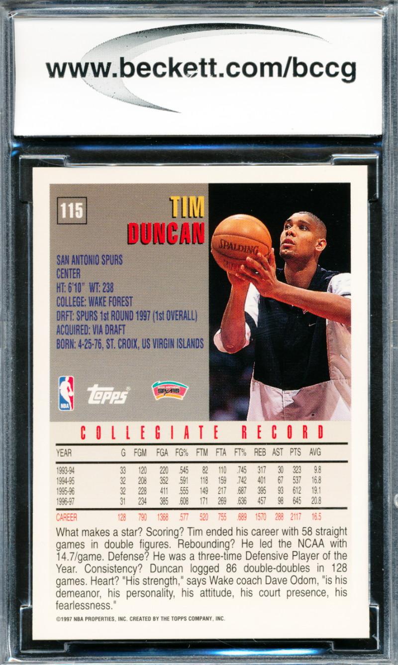 Tim Duncan 1997-98 Topps #115 (BCCG 10)