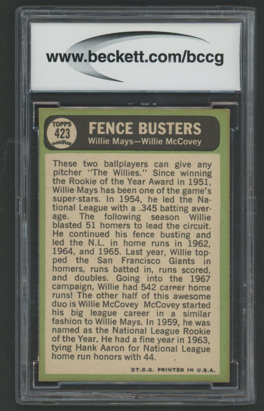 Willie Mays / Willie McCovey 1967 Topps #423 Fence Busters DP (BCCG 8)
