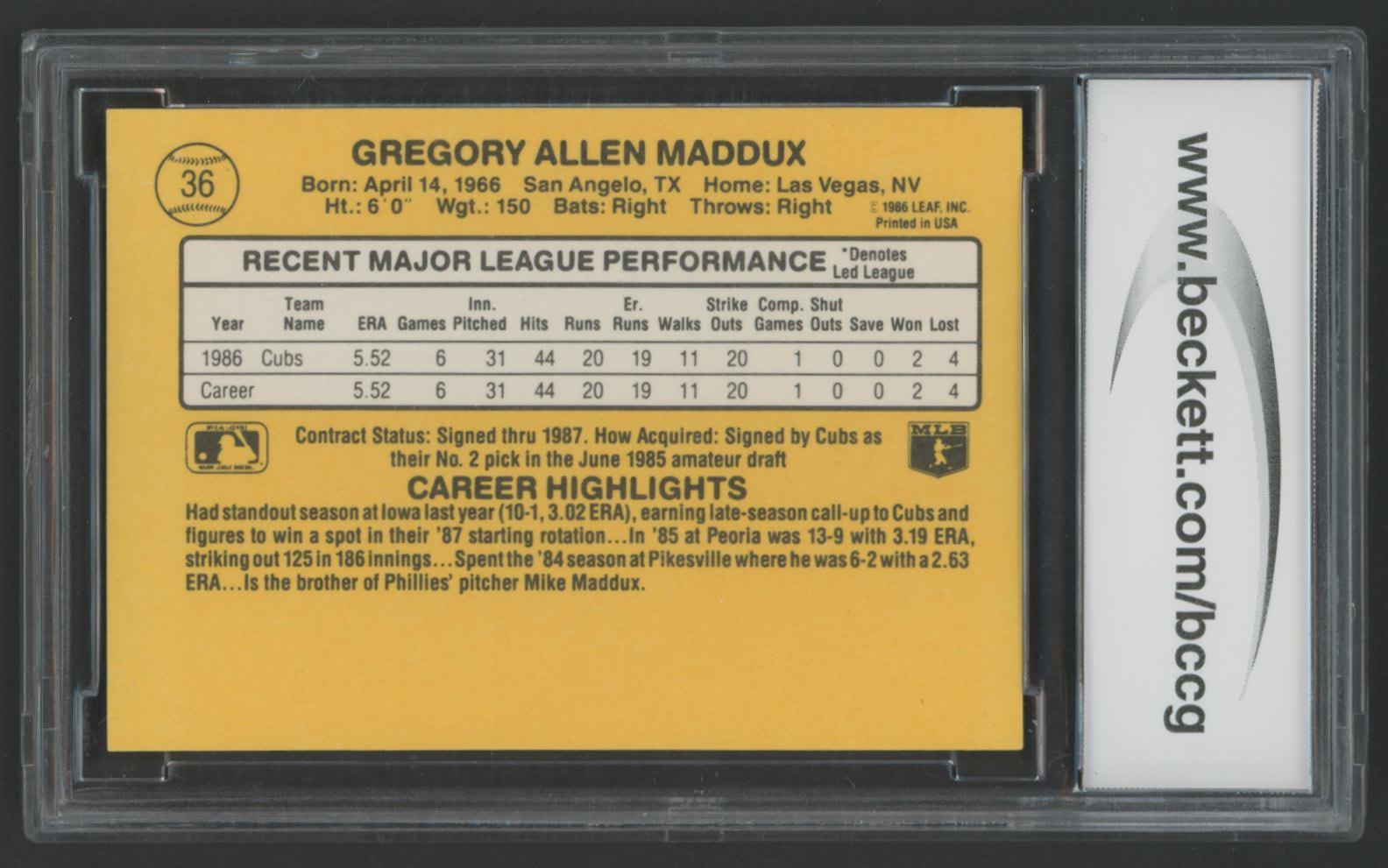 Greg Maddux 1987 Donruss RR #36 RC (BCCG 10)