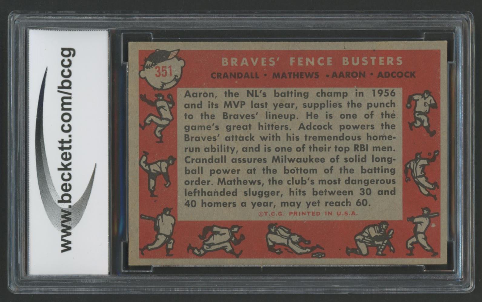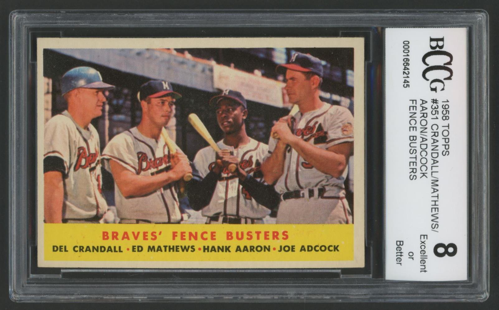 Del Crandall / Eddie Matthews / Hank Aaron / Joe Adcock 1958 Topps Fence Busters #351 (BCCG 8)