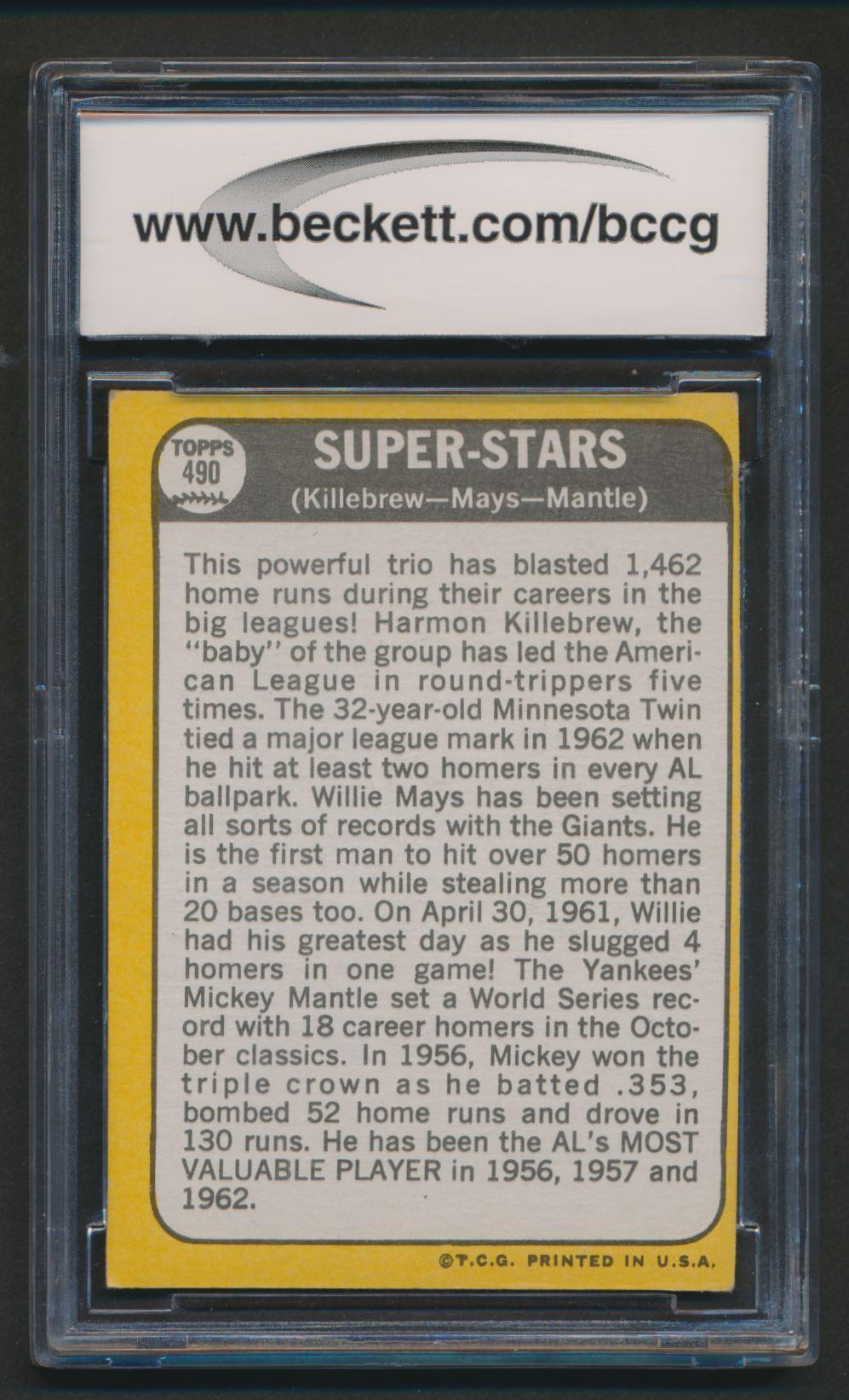 Harmon Killebrew / Willie Mays / Mickey Mantle 1968 Topps #490 Super Stars (BCCG 8)