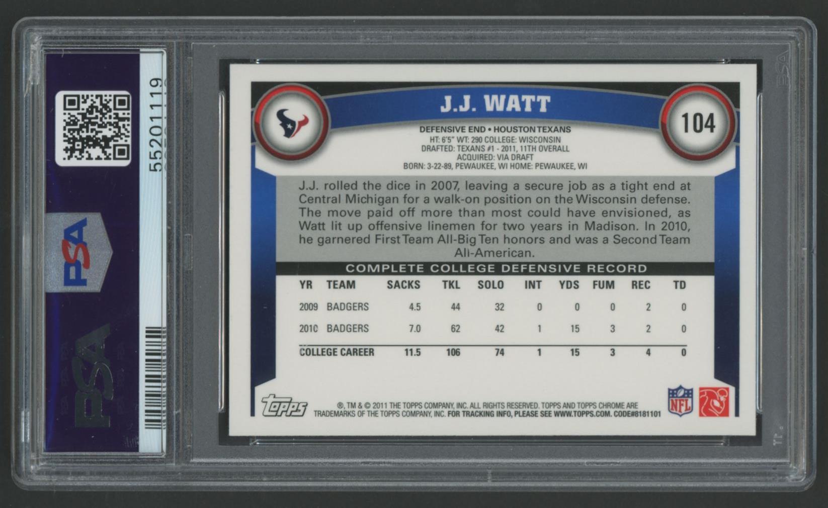 JJ Watt 2011 Topps Chrome #104 RC (PSA 10)