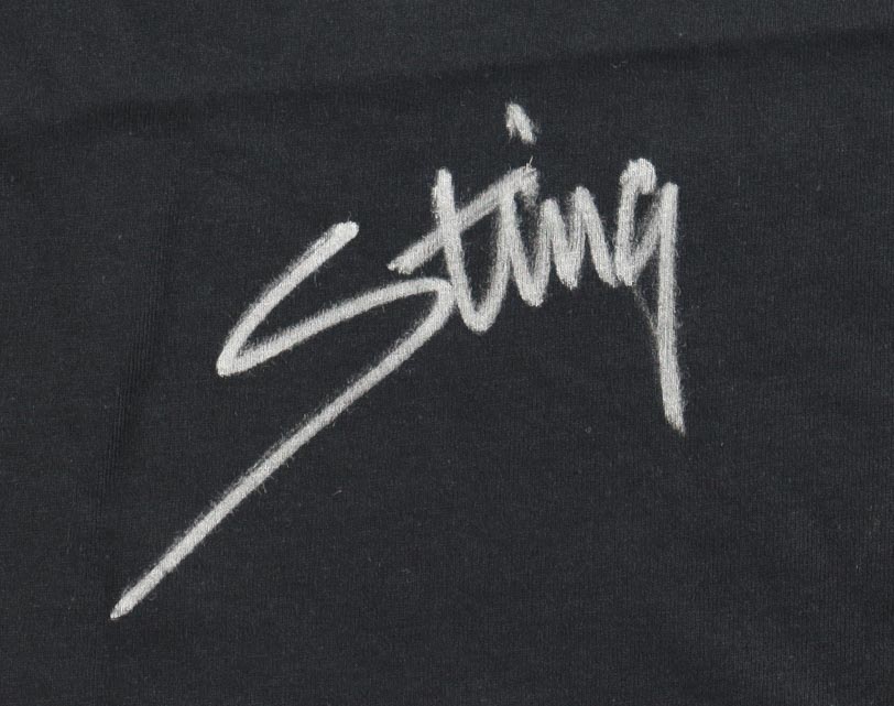 WWE T-Shirt with everything printed on, size XL. Hand-signed by Sting (HOF).