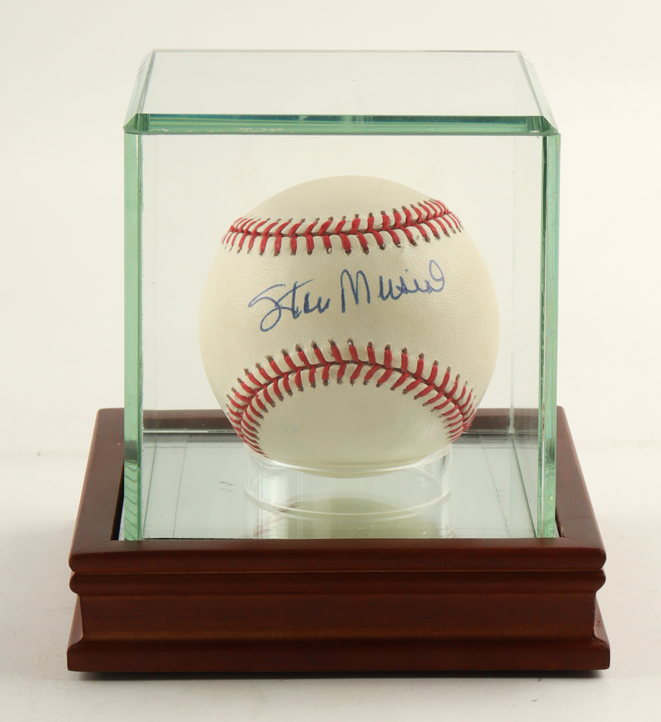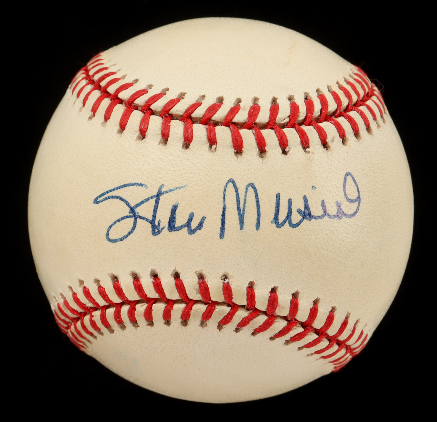 Rawlings Official National League baseball. Hand-signed by Stan Musial (D. 2013, St. Louis Cardinals, HOF). Note that the display case is included in the listing as shown above.