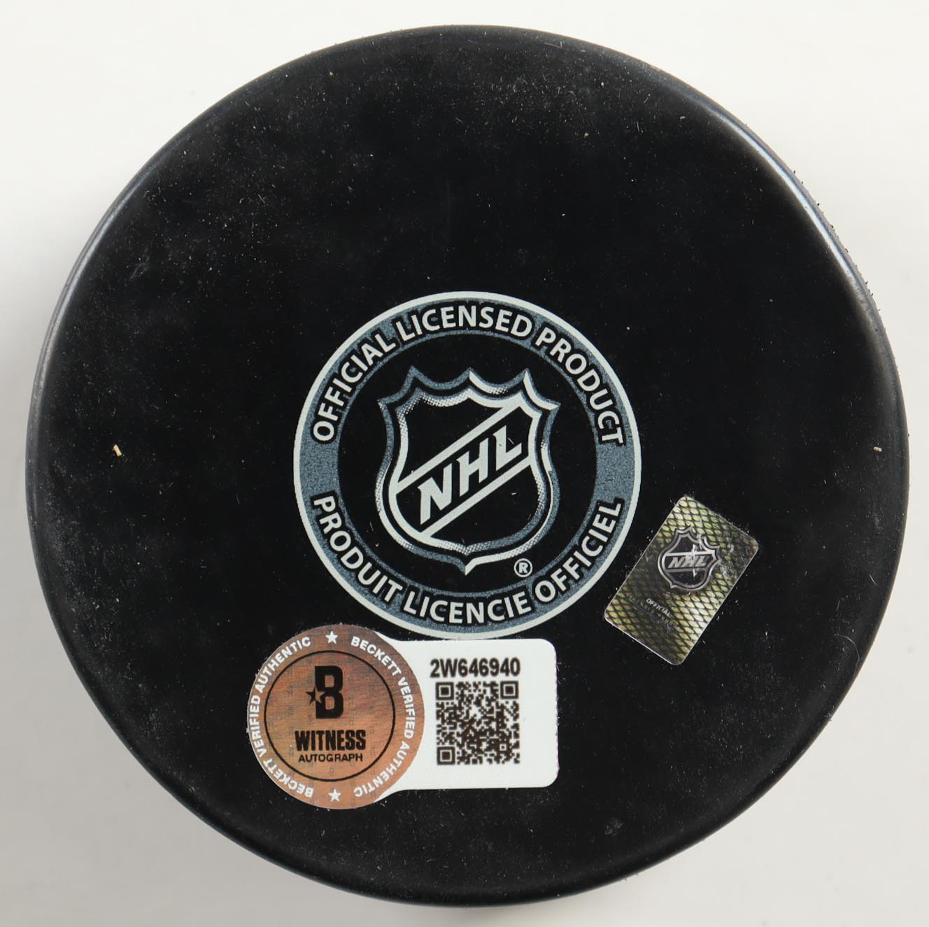 Boston Bruins Logo Hockey Puck. Hand-signed and inscribed by Adam Oates (HOF).