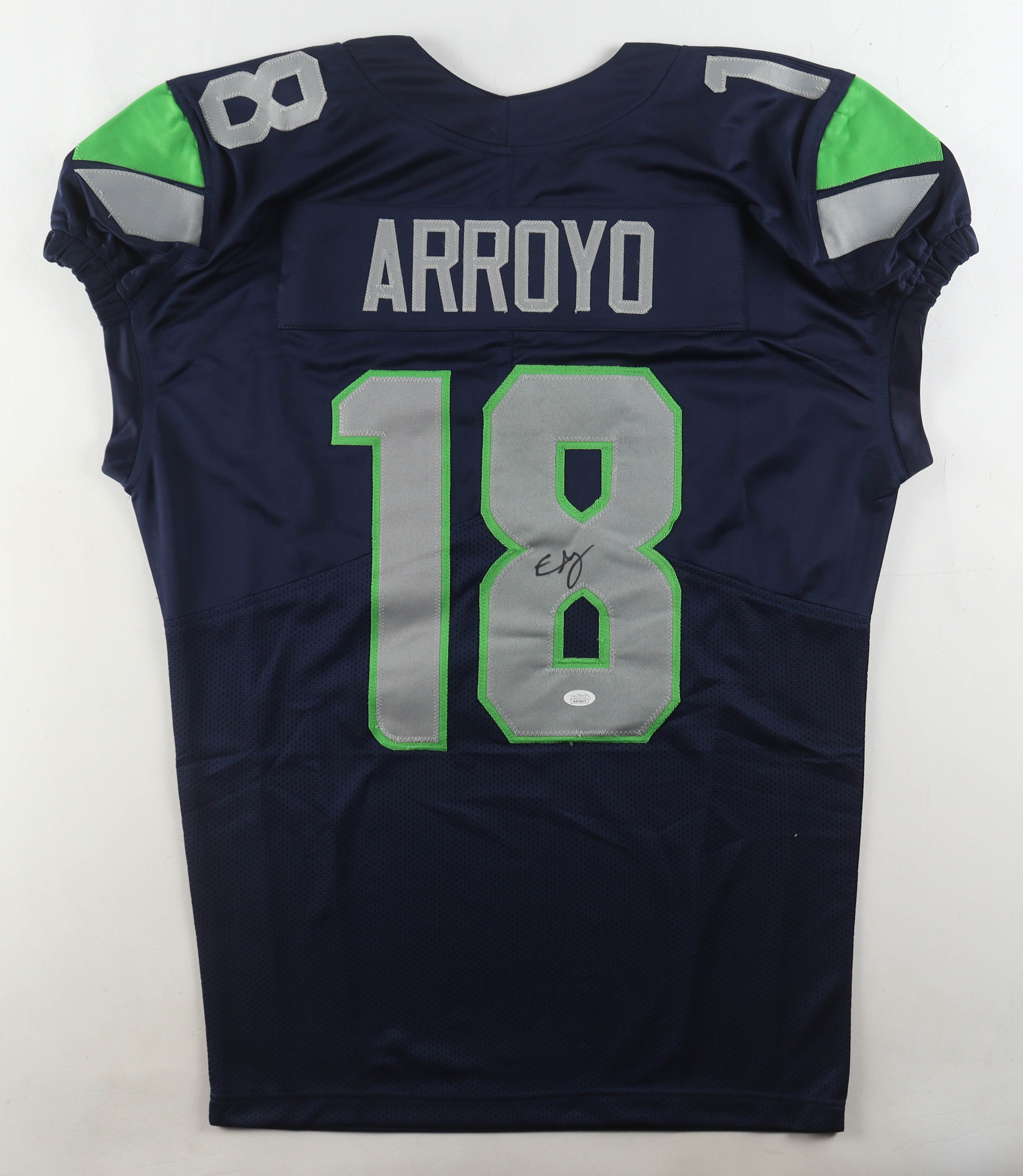 Custom jersey with everything sewn on, size XL. Hand-signed by Elijah Arroyo.