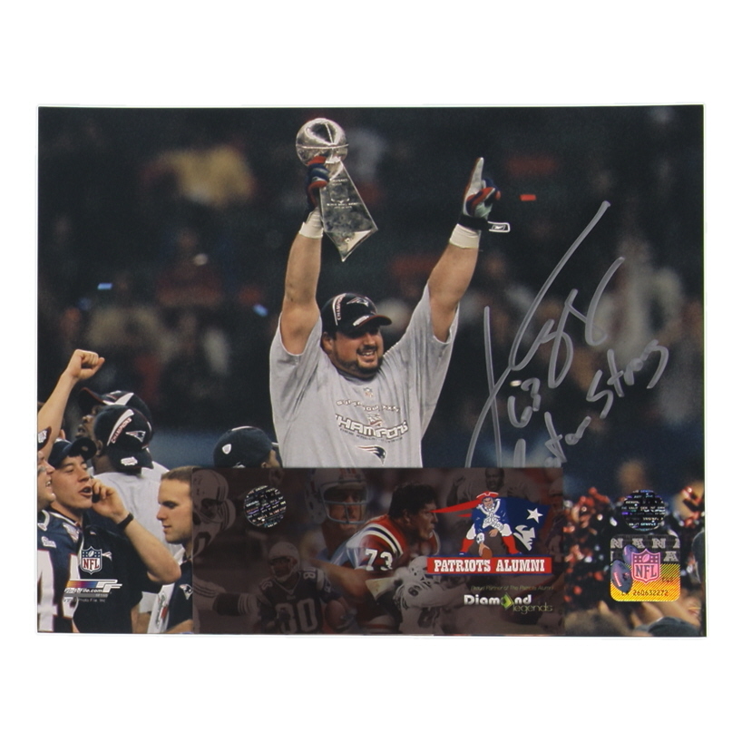 Photo measures 8" x 10" in size. Hand-signed and inscribed by Joe Andruzzi (New England Patriots).