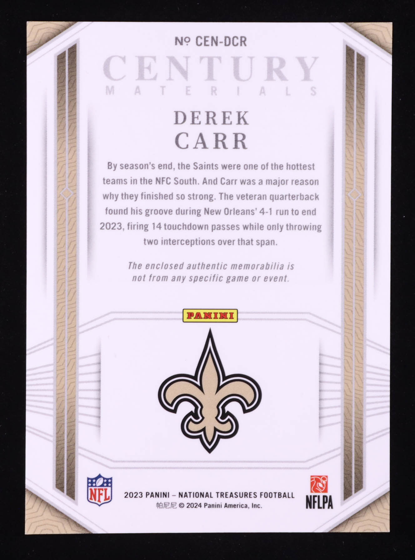 Derek Carr 2023 Panini National Treasures Century Materials Patch Memorabilia #CEN-DCR #52/99