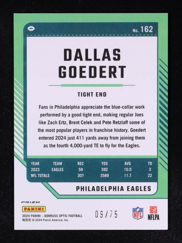Dallas Goedert 2024 Donruss Optic Electricity #162 #09/75